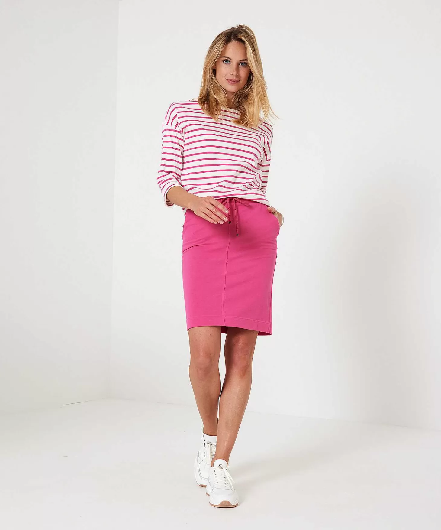 Het Giulia E Tu Bretonse Streepshirt Mag In Geen Enkele Fashionista-Wardrobe Ontbreken. Tijdloos & Sportief, Van Stevige Katoen Met Aangename Stretch Is Dit Een Ware Klassieker. In Offwhite/ Marine Of Offwhite/Fuchsia Gestreept Met Een Laag Ingezette 3/4E Mouw + Decoratieve Knoopjes Ben Je Maritiem Op Je Best. Tel Daar Het Vaste Omslagje Aan De Mouw En De Zijsplitjes Bij De Zoom Bij Op En Je Bent Verkocht. Op Je Werk Of Een Feestje Met Een Pantalon En Loafers Is Ze Perfect, Maar Ook Op Vakantie Of Dagje Shoppen Met Een Jeans Of Capribroek + Sneakers Of Sandaaltjes Creëer Je Een Minimal Chic Look. Ship Ahoy Sailorettes! Samenstelling: 100% Katoen.