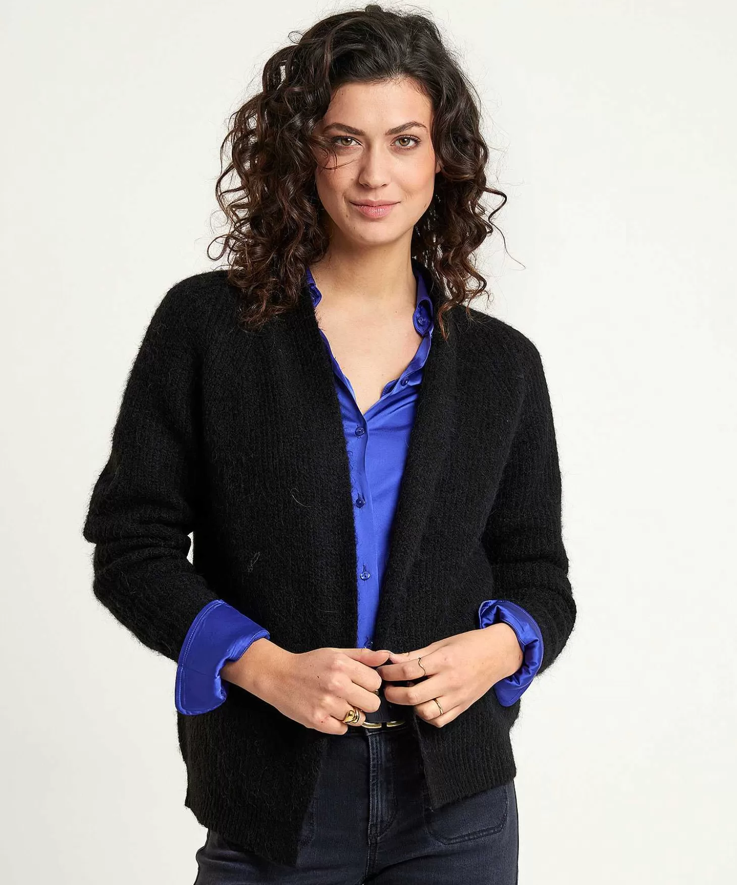 Dit Giulia E Tu Swaggervest Houdt Jou Warm Tot Aan De Lente. Voel Je Haar Zachte Wol/Alpacamix En Zie Je Haar Minimalistische Ontwerp? Met Een Aangename Sjaalkraag En Een Rechte Losse Fit Voegt Ze Zich Met Haar Neutrale Marineblauw, Zand, Grijs En Zwart Perfect Naar Vele Garderobes. Je Draagt Haar Met Een Crispy Witte Blouse, Een Pantalon En Loafers Naar Je Werk Of Een Feestje. Maar Ook Met Een Streepshirt Of Colshirt In Mesh, Een Jeans En Boots Creëer Je Een Citychic Look. This One Is A Keeper! Samenstelling: 34% Acryl, 25% Polyamide, 20% Wol, 16% Alpaca, 5% Elastan.