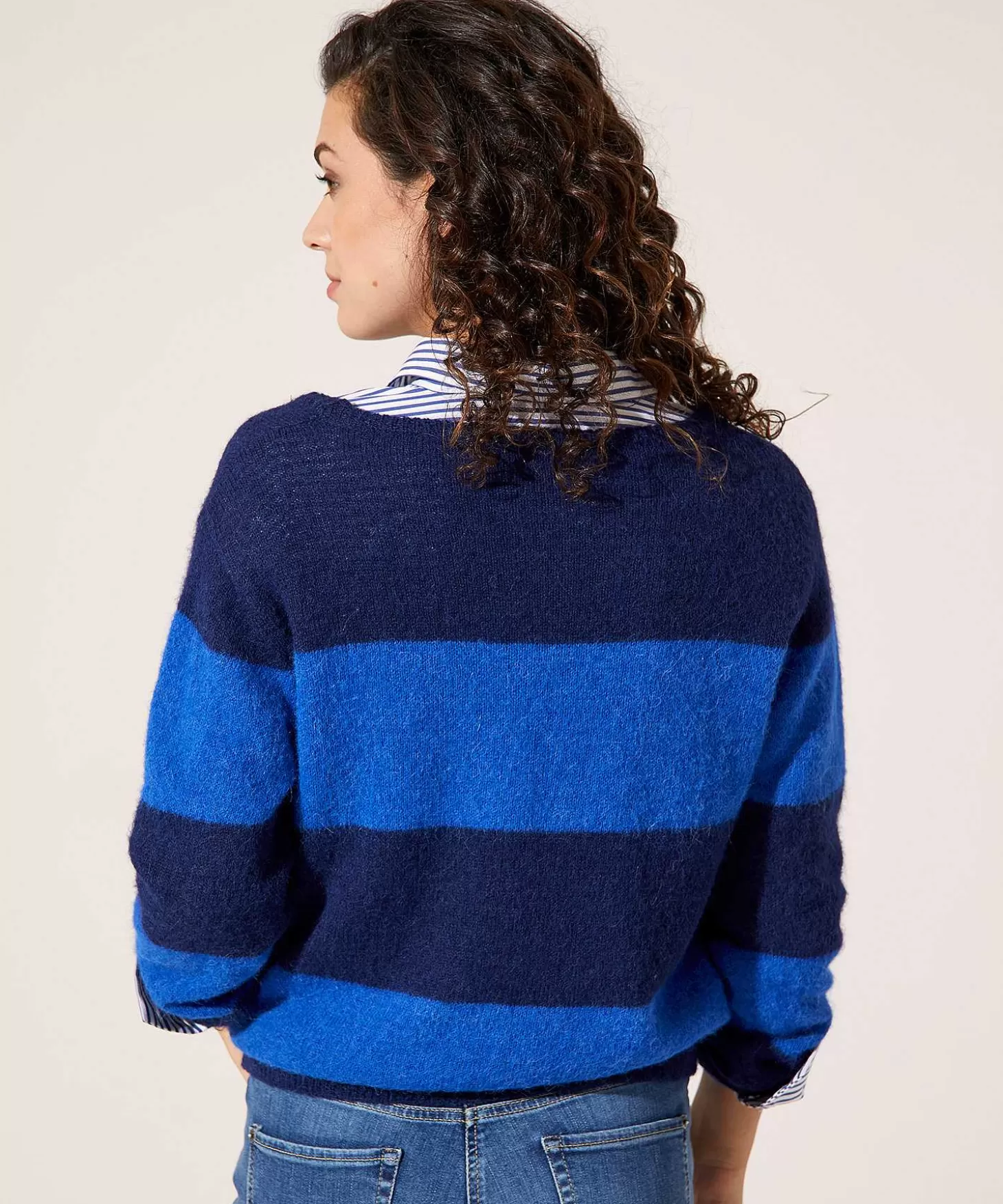 Alpaca Meets Stripes In Deze Giulia E Tu Trui In Alpacamix. Zie Je Haar Maxi-Strepen In Oceaanblauw En Marine En Voel J…