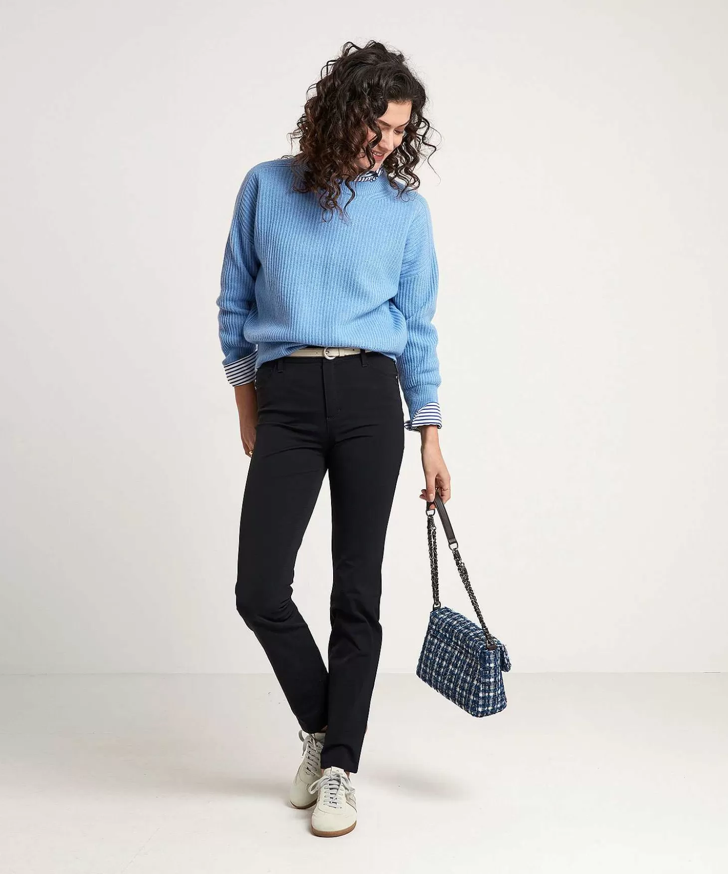 Met Luxe Merinowol En Speels Breipatroon Wordt Deze Trui Jouw Nieuwe Favoriet. Zie Je Haar Gemêleerde Ijsblauwe (Provence) Kleur En Voel Je Haar Weldadig Warme Breisel In Merinowolmix Met Een Toefje Cashmere? In Een Los Model Met Een Decoratief Gebreide Baan Vanuit De Hals Naar Het Manchet (Optische Raglanmouw) Is Ze Nét Een Tikkeltje Anders. Je Combineert Haar Met Veel Uit Jouw Garderobe, Zoals Met Een Satijn Blouse, Een Jeans En Laarsjes Naar Je Werk. Op Een Feestje Draag Je Haar Met Een Mesh Colshirt , Een Vegan Leren Broek En Loafers. Maar Ook Een Pantalon Of Printbroek + High Heels Of Sneakers Kan Ze Prima Aan. Laat De Kou Maar Komen, Jij Bent Er Fashionable Klaar Voor. Samenstelling: 48% Merinowol, 30% Viscose, 15% Polyamide, 7% Cashmere.