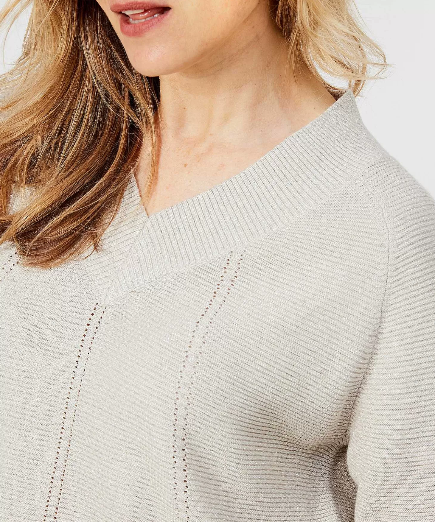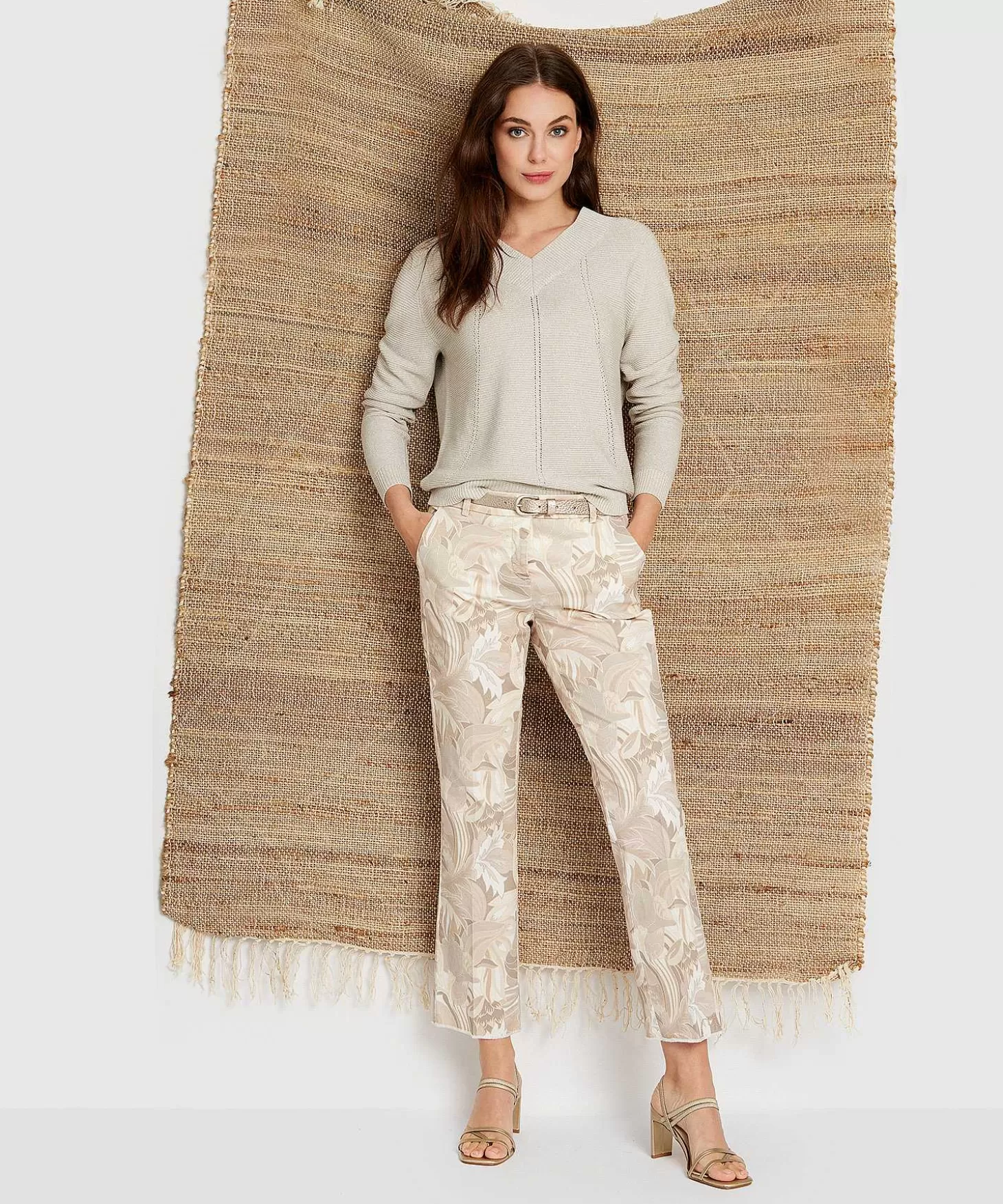 Deze Giulia E Tu Is De Ultieme Summer Knitwear. Met Haar Fijne Breisel, Neutrale Zandkleur En Haar Sparkling Lurex Oogt Ze Minimal Chique! Haar Brede V-Hals, Raglanmouw En Uitwaaiende Verticale Ajourbanen Geven Deze Top Extra Elegantie En Het Linnen Zorgt Voor Luchtig Draagcomfort. Oh La La! Draag Haar Met Een Jeans En Sneakers Op Citytrip En Ton Sur Ton Met Een Broek Of Lange Rok In Sandy Whites Straal Jij Feminien De Zomer Tegemoet. Sparkle & Shine Is Eenvoudig In Deze Beauty. Samenstelling: 47% Linnen, 38% Viscose, 9% Polyamide, 6% Metallic.