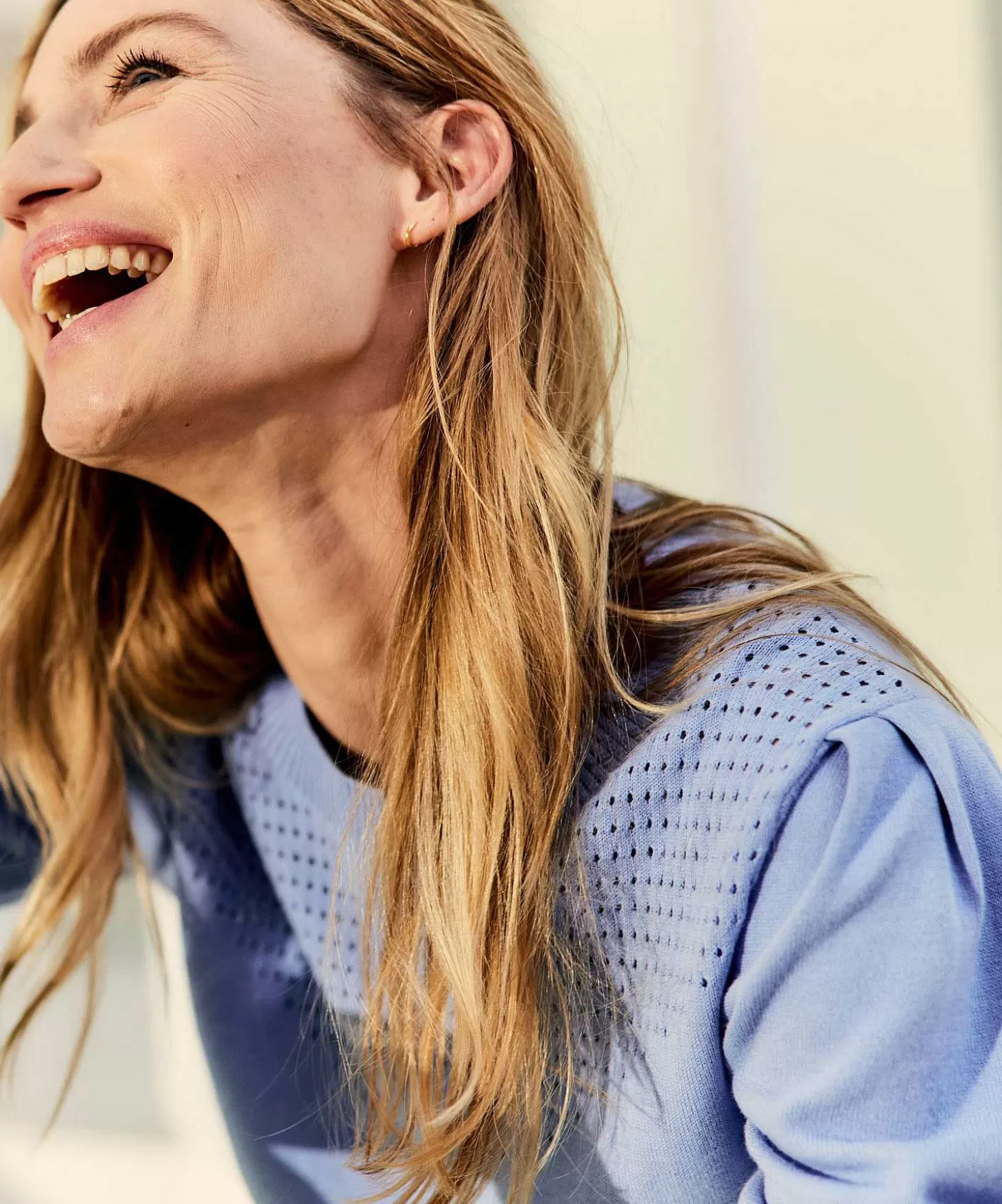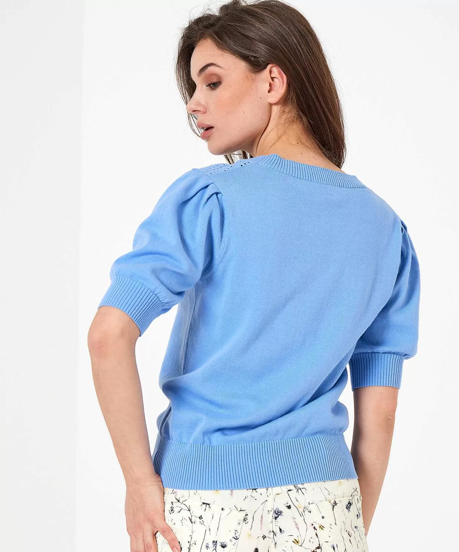 Geraffineerd In Haar Eenvoud Is Dit Soepele Truitje Van Giulia E Tu Met Haar Opengewerkte Ronde Hals En Mouwen Tot Net Aan De Elleboog. Een Ideaal Lentetruitje Of Voor De Wat Frissere Zomerdagen. Samenstelling: 100% Katoen.