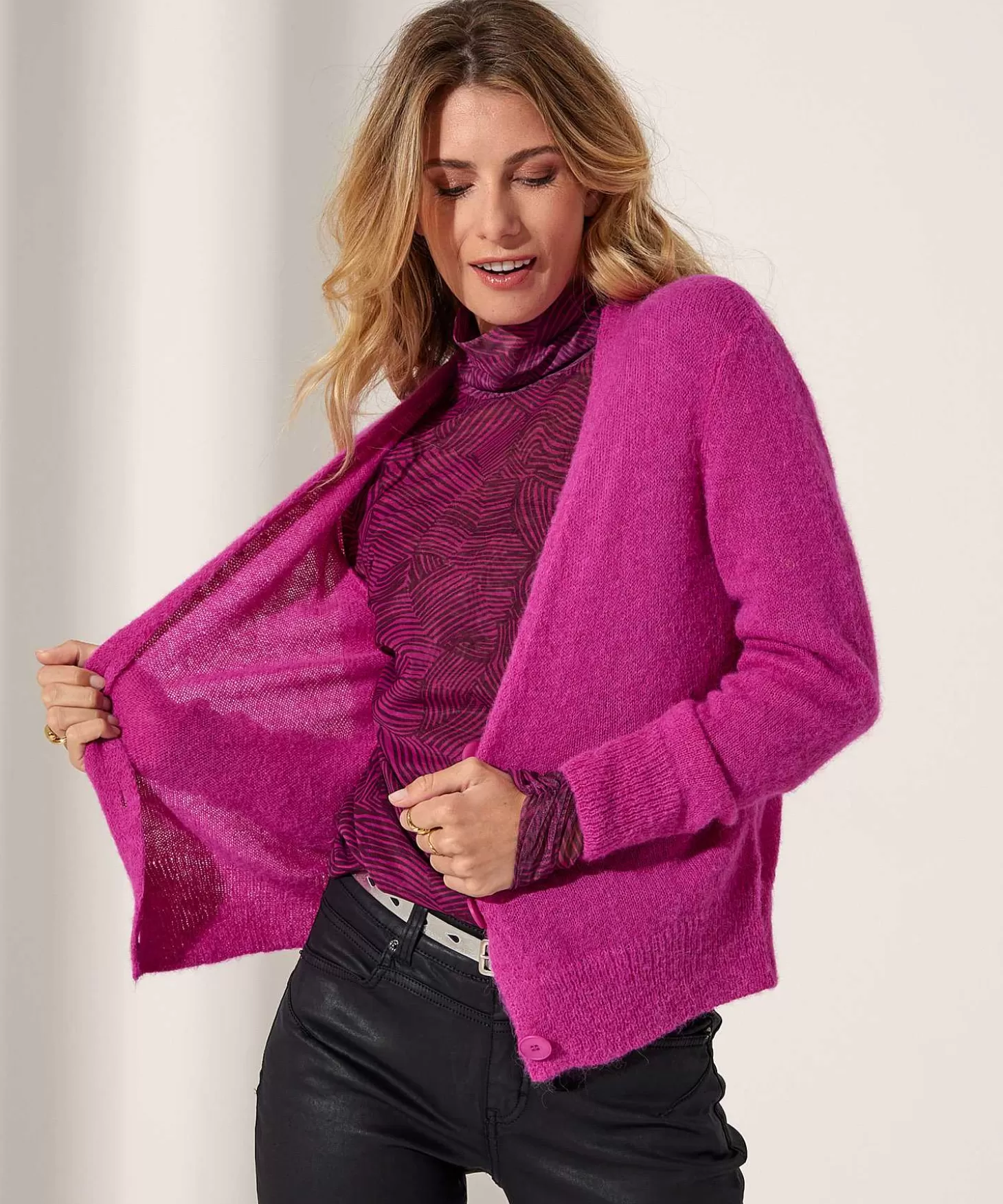 Giulia E Tu Maakt Het Je Moeilijk, Want Welke Kleur Moet Je Kiezen? Een Kort Knopenvest, Voor Dagelijks Gebruik, Afgestemd Op De Kleur En Outfit Van De Dag En Breed Inzetbaar Qua Combinatie Mogelijkheden. Qua Comfort En Warmte Is Het Duidelijk, Dit Fijn Gebreide Vestje Met Een Fluffy Structuur Geeft Voldoende Warmte Door Haar Fijne Mengsel Met Alpaca En Polyamide. Draag Haar Om Je Outfit Af Te Stylen Op Een Wide Leg Pants, Een Jeans Of Op Je Rok En Zeker Over Je Jurk. De Mogelijkheden Zijn Eindeloos. Het Vest Heeft Een Boxy Losvallende Fit. Draag Haar Met De Drie Knopen Vast Of Kies Ervoor Om Ze Open Te Laten. Beschikbaar In De Kleuren Groen, Fuchsia, Marine En Ocean. Samenstelling: 62% Alpaca, 38% Polyamide.