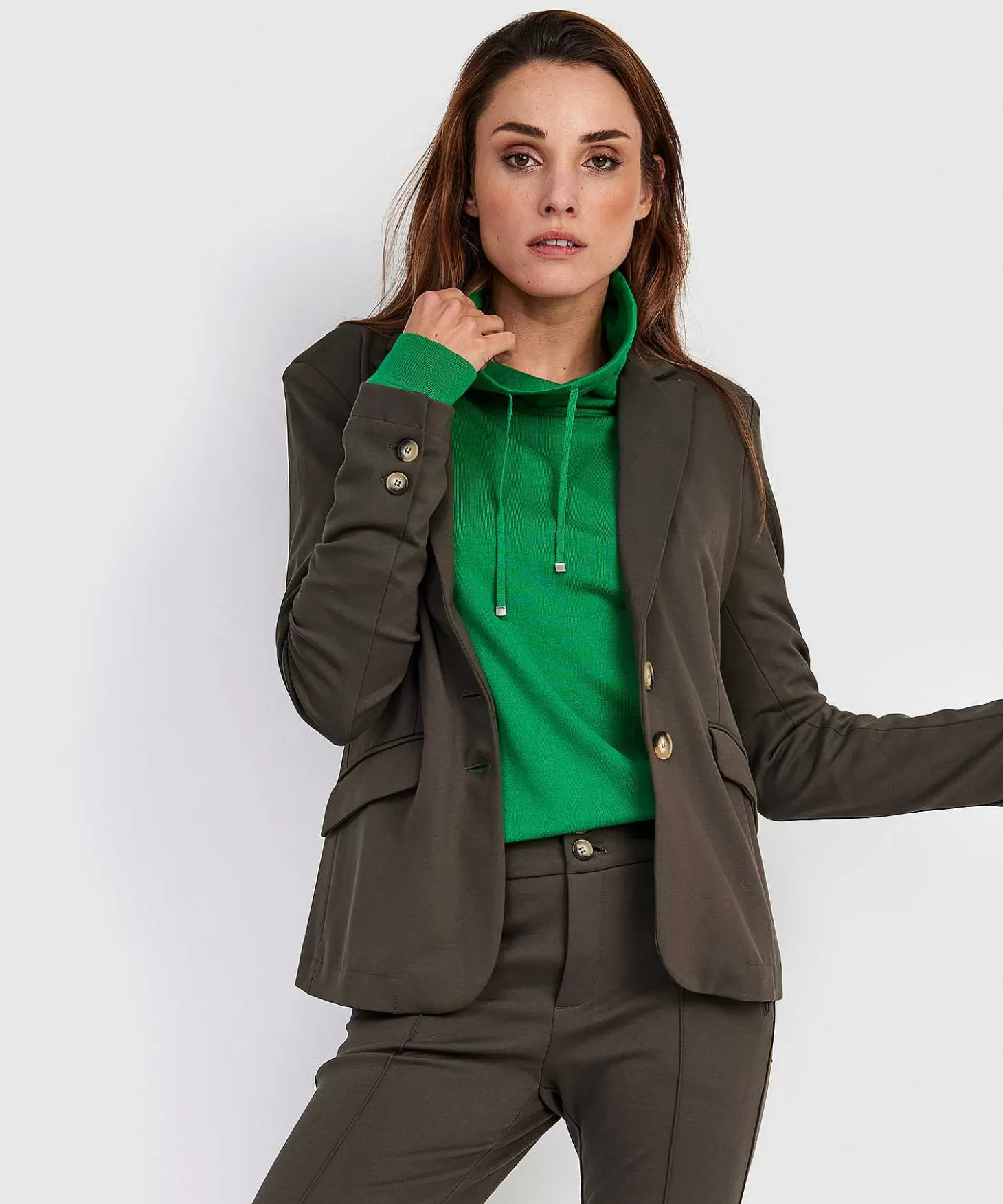 Draag Deze Jane Lushka Blazer In Comfy Jersey Naar Alle Gelegenheden. Stretchy, Feminien, Kreukvrij En Sportief Kan Havana Alle Stijlen Aan. Met Haar Getailleerde Pasvorm, Neutrale Olijfkleur, Platte Revers, Figuurnaden, Knoopsluiting En Paspelzakjes Is Ze Absoluut Office- En Travelproof. Draag Haar Met Een Glanstop, Een Streep Colshirt, De Matching Jane Lushka Broek Of Een Casual Jeans. Boots, Laarsjes, High Heels Of (Wandel)Schoenen Erbij En Jullie Gaan Samen Vele Fashionable Meters Maken. Samenstelling: 75% Viscose, 25% Polyamide.