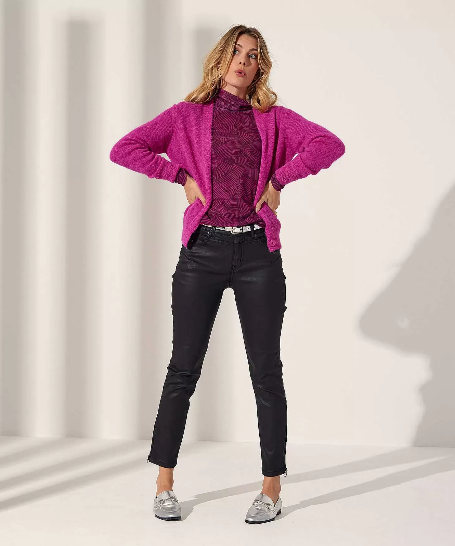 Don’T Mesh With Mascha! Want Dit Jane Lushka Colshirt In Fijne Mesh Zit Vol Verrassingen. Zie Je Haar Optische Cirkelpatroon In Fuchsia En Matzwart En Wist Je Dat Haar Voorpand (Semitransparant) Gevoerd Is? Naast Een Trendy Col Heeft Ze Een Elastische Rimpeling In De Zijnaad En Mouw En Heeft Ze Een Elastisch Aansluitende Pasvorm. Je Draagt Dit Model Onder Een Furry Gilet, Blazer Of Vestje Met Een Pantalon, Vegan Leren Broek Of Jeans. Sneaker, Boot, Loafer Of High Heel Eronder En Je Bent Altijd Fashionable Onderweg. Samenstelling: 95% Polyester, 5% Elastan.