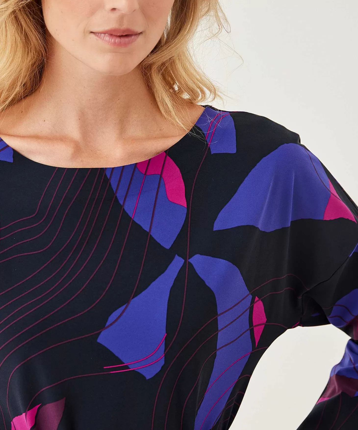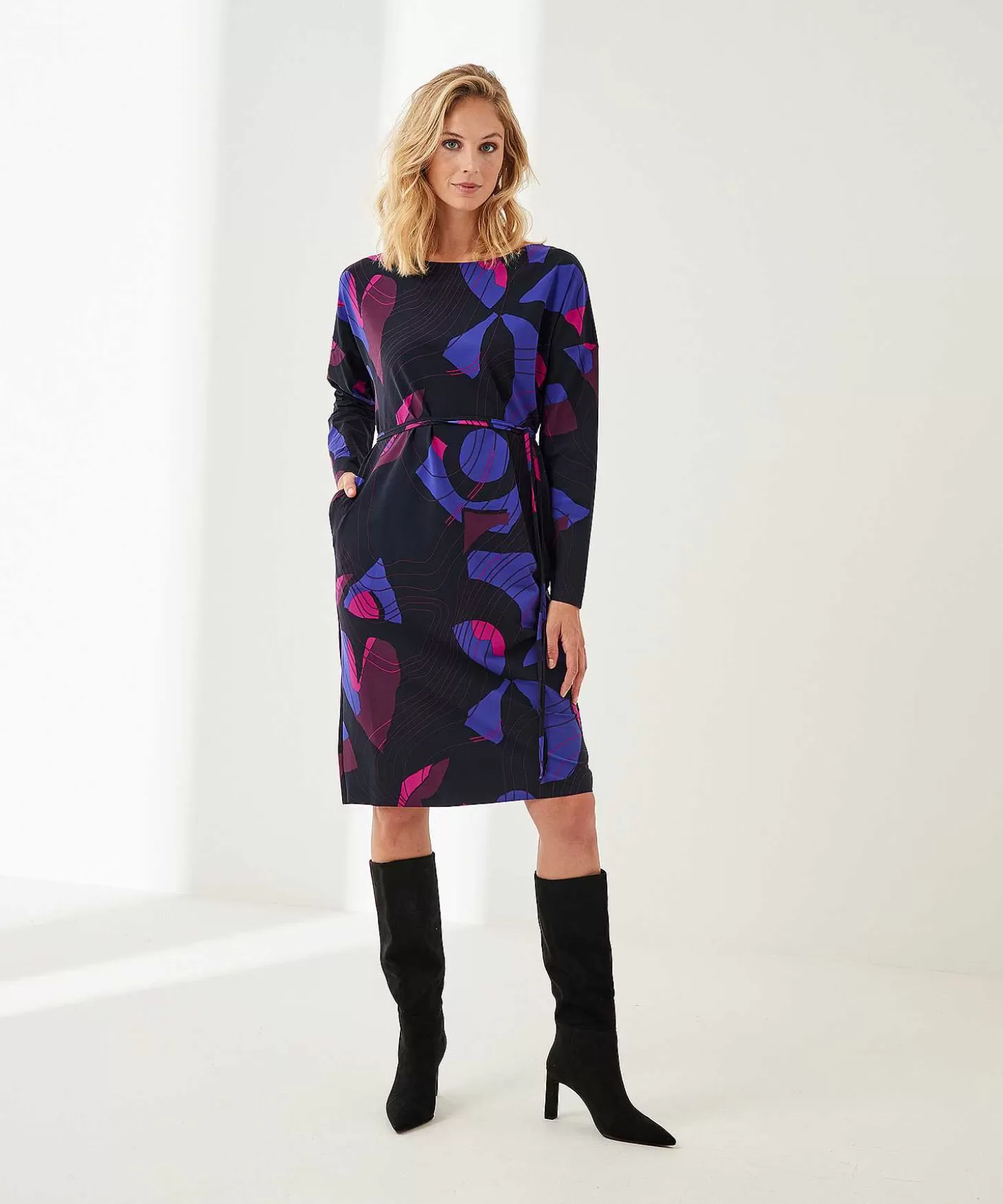 Reis De Wereld Rond In Dit Soepele Jurkje Uit De Collectie Van Japan Tky. Een Tijdloos Model, Stralend Door Eenvoud, Hier Uitgevoerd In Een Fancy Print In De Tinten Fuchsia Roze, Kobalt-Paars Blauw Gecombineerd Met Zwart En Een Zweempje Aubergine-Bruin. Dit Knielange Jurkje Is Gemaakt Van Travel Materiaal. Ideaal Bij Travel Is Het Dragen, Wassen, Snel Weer Droog En Zonder Strijken Weer Dragen. Draag Dit Jurkje Losvallend Of Knoop Het Meegeleverde Koord In Je Taille. Je Kunt Natuurlijk Ook Voor Je Eigen Riem Kiezen En Daarmee Kiezen Voor De Stijl Die Je Wilt Uitdragen. Een Paar Laarzen Met Hoge Hak, Maar Ook Een Paar Stoere Sneakers Doen Het Geweldig. Samenstelling: 75%Polyamide, 25% Elastan.