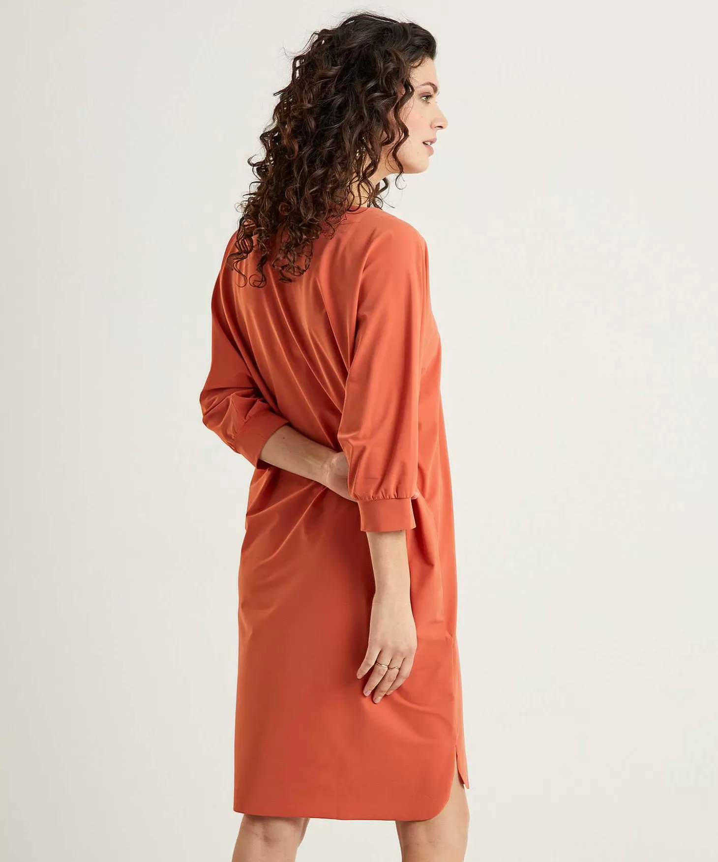 Shige Is De Perfecte Japan Tky Jurk In Travelstof. Zie Je Haar Chique Terra Kleur, Losse Pasvorm En Minimalistische Afwerking? Met De Voordelen Van Travelwear: Kreuk- En Strijkvrij, Ademend En Onderhoudsvriendelijk, Is Dit Jouw Ideale Reismaatje. Naast Een V-Hals, Aangeknipte 3/4E Mouw En Verborgen Steekzakjes Heeft Ze Een Zijsplit Bij De Zoom. Met Haar Losse Fit Past Ze Vele Figuurtypes En Je Draagt Haar Naar Vele Gelegenheden Met Loafers, High Heels Of Sneakers. Samenstelling: 75% Polyamide, 25% Elastan.