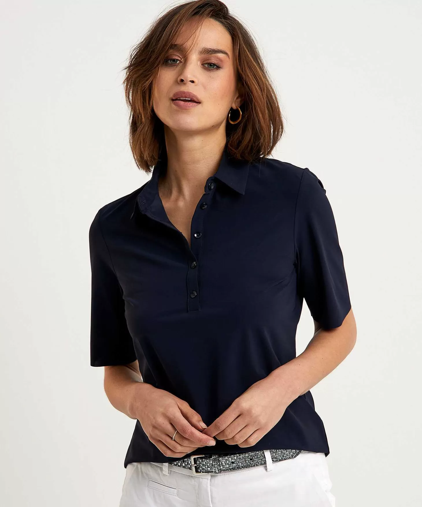 Poloshirt Van Japan Tky Met Onafgewerkte Korte Mouw En Rond Uitlopend Silhouet In Model ‘Hyn’. Verkrijgbaar In De Basiskleuren Zwart, Zwart Blauw En Wit. Het Fijne Van Deze Poloshirts Is Het Draagcomfort Van Travelkwaliteit Waardoor De Polo Licht In Gewicht Is, Kreukvrij En Makkelijk Wasbaar. Lengte Vanaf De Schouder Bij Maat S: 60 Cm. Samenstelling: 72% Polyamide, 28% Elastan.