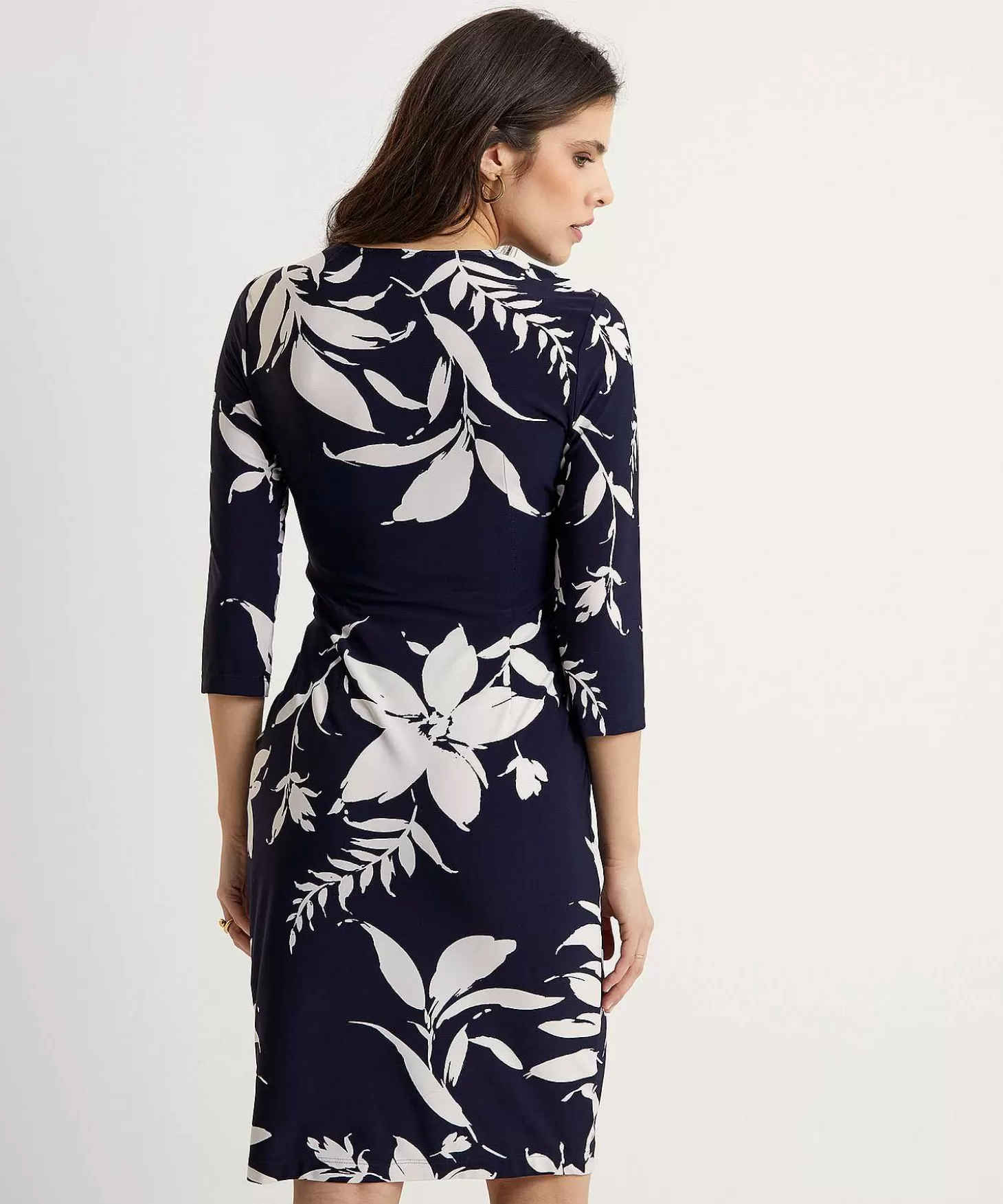 In Feminien Kokerjurk Model Is Deze Joseph Ribkoff Overslag Jurk Een Plaatje. Zie Je Haar Flowerprint In Nachtblauw Met…