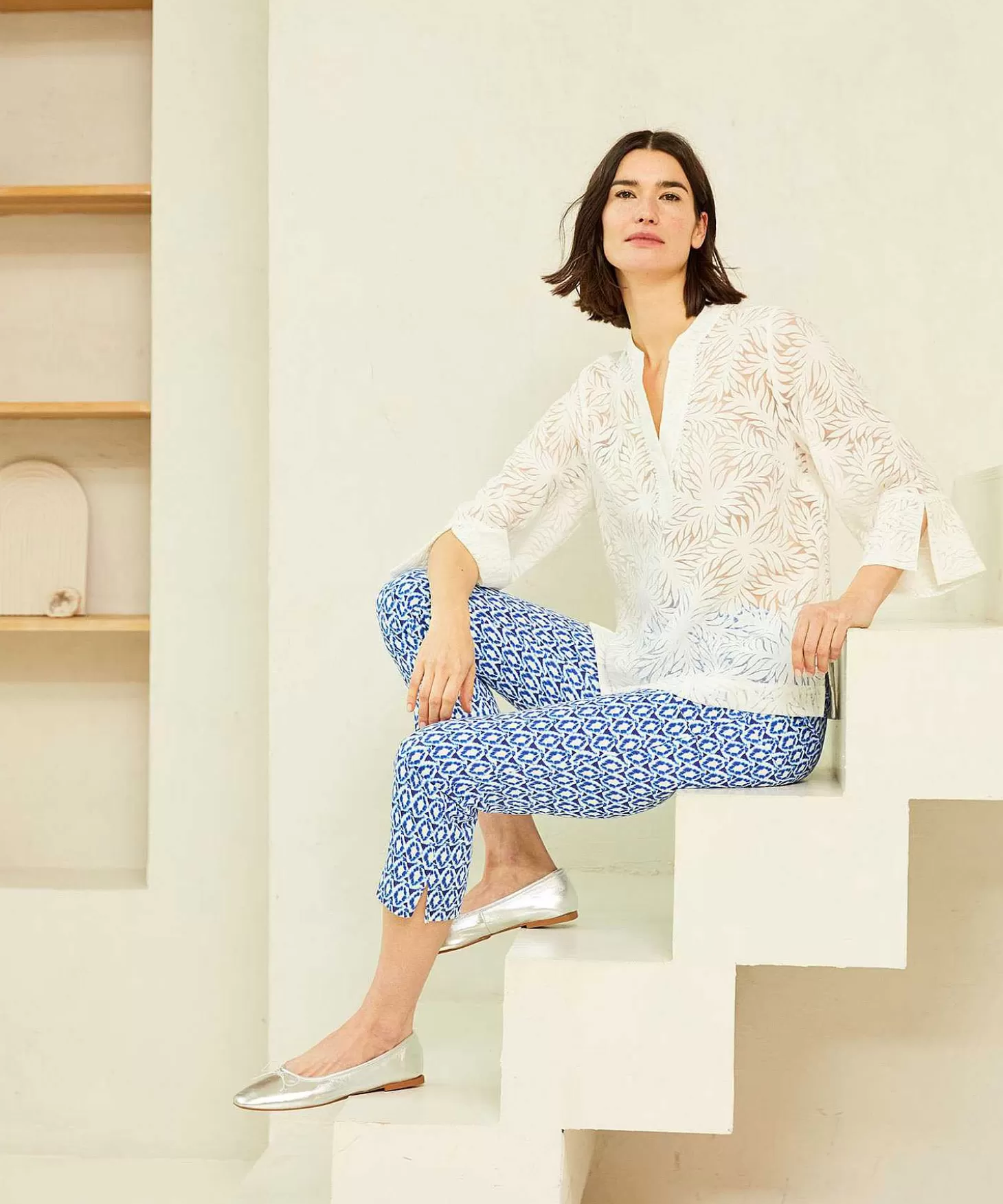Luchtige Ausbrenner Blouse Olga Met Kielsluiting Van Kyra, In Offwhite Of ‘Blue Galaxy’ Blauw. De Doorkijkjes Tussen De…