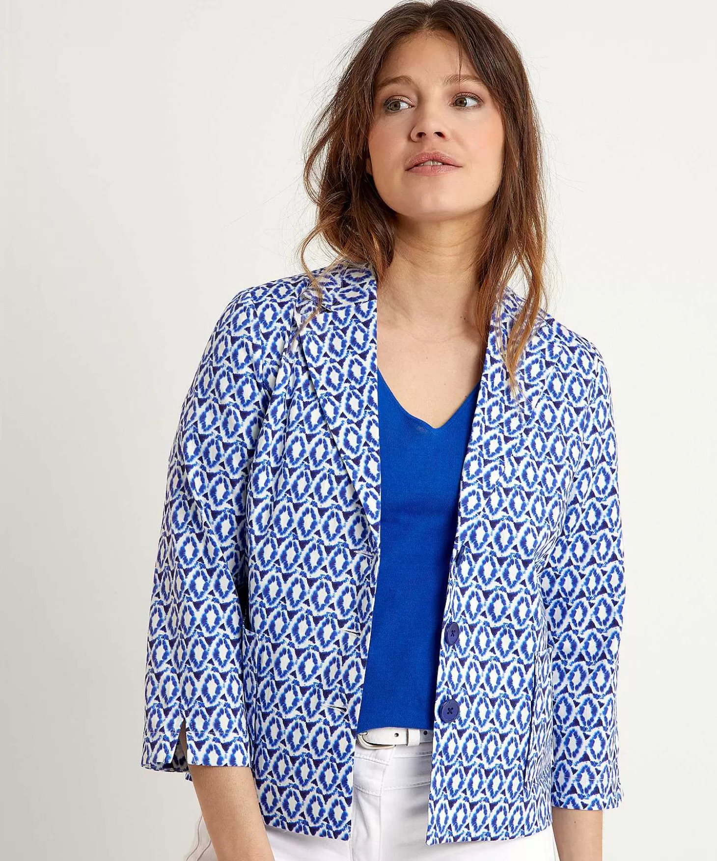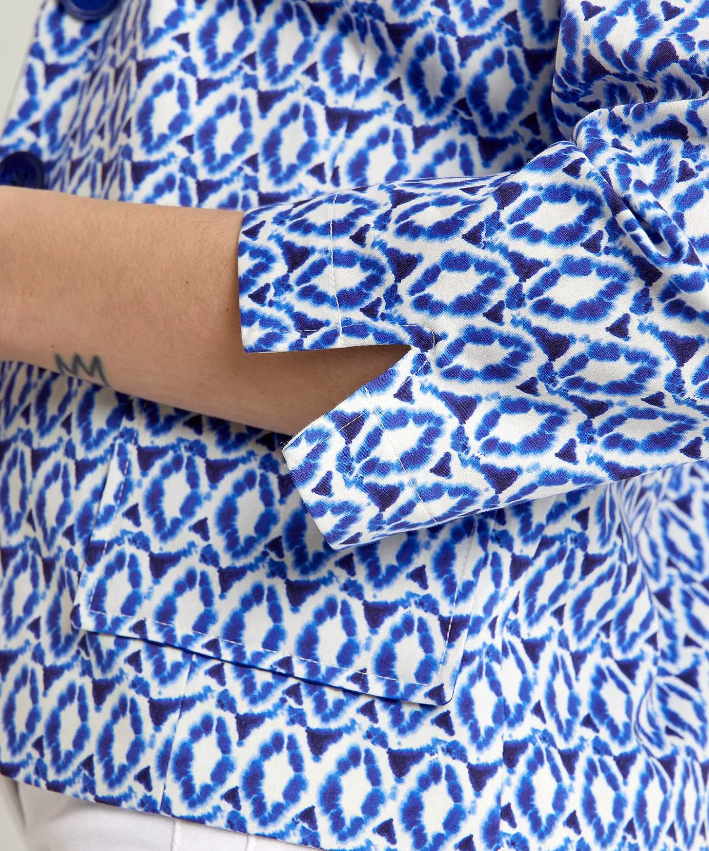 Onze Favoriet Is Dit Soepele Blazerjasje Van Kyra, Model Angelina. De Delftsblauwe Kleuren In De Tie-Dye Print Zijn Hee…