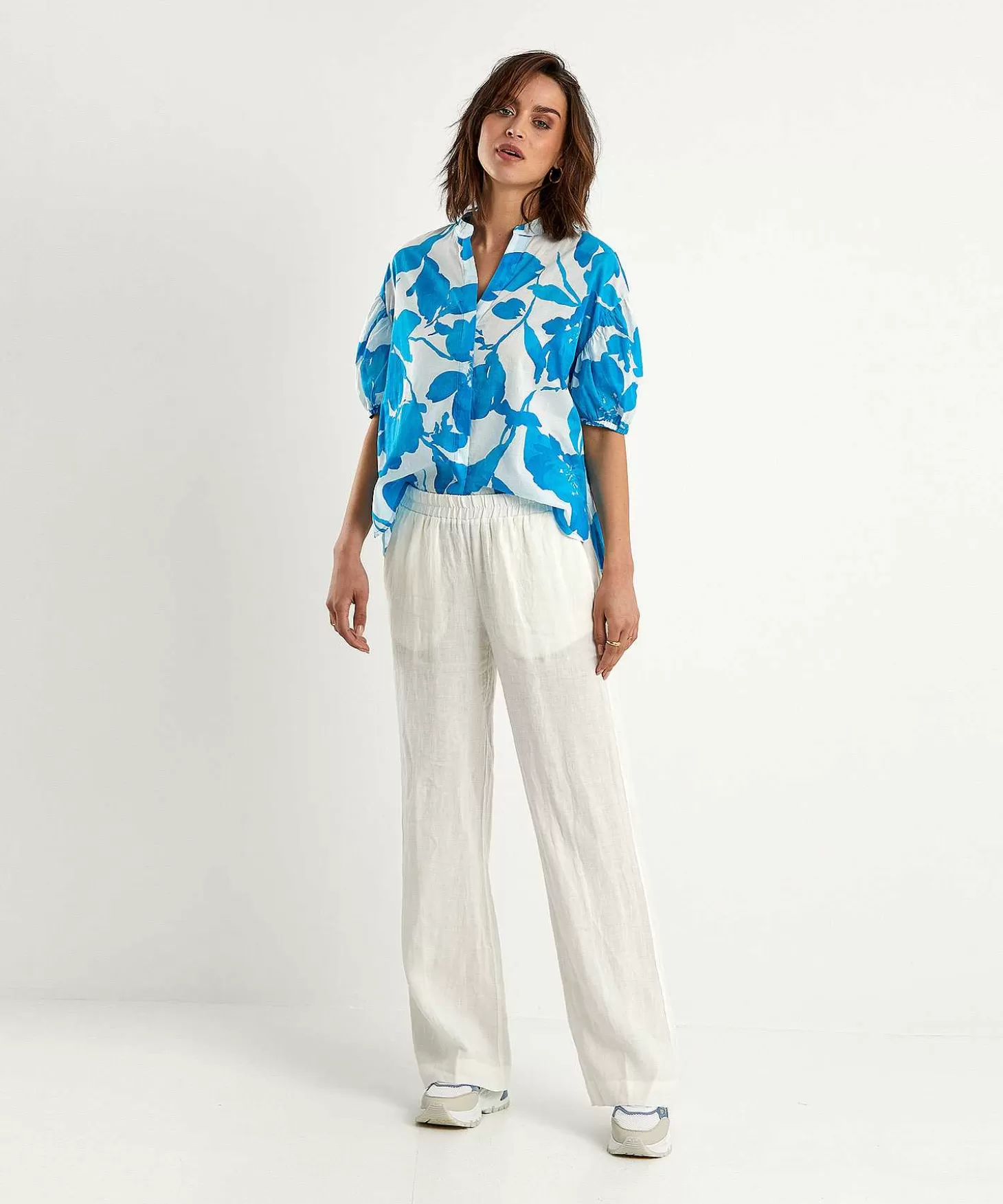 Je Draagt Haar Met De Linnen Kyra Broek Lieke En Loafers Tijdens Een Citytrip. Maar Ook Een Denim Rok Of Shorts En Sandaaltjes Kan Dit Bloesje Prachtig Aan. Samenstelling: 100% Katoen.