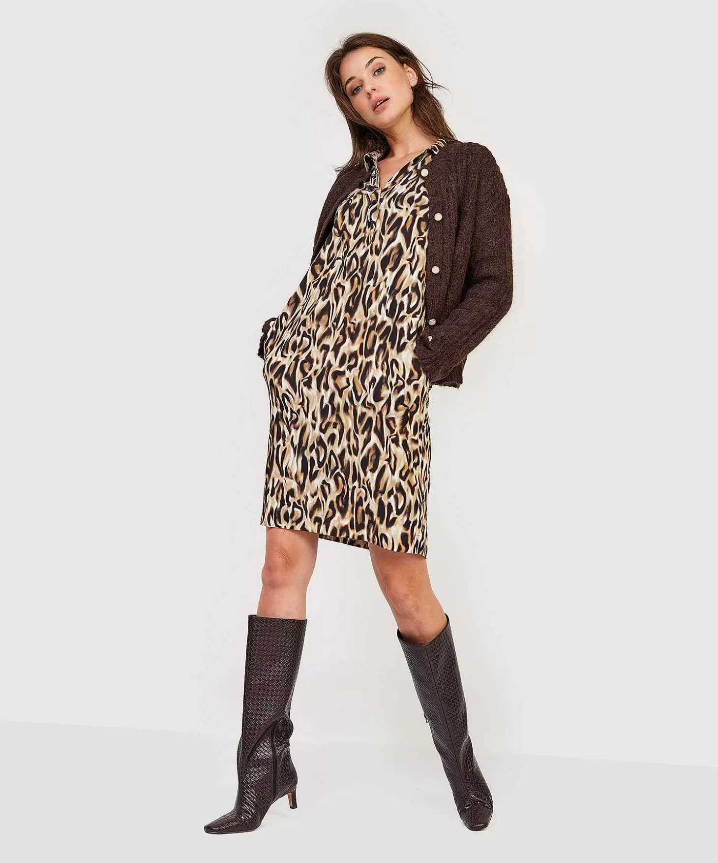 Vlekje Voor Vlekje Verovert Deze Kyra Jurk In Animalprint Jouw Hart. Wat Een Feminien Model Met Haar Tuniekkraag, Gesmo…