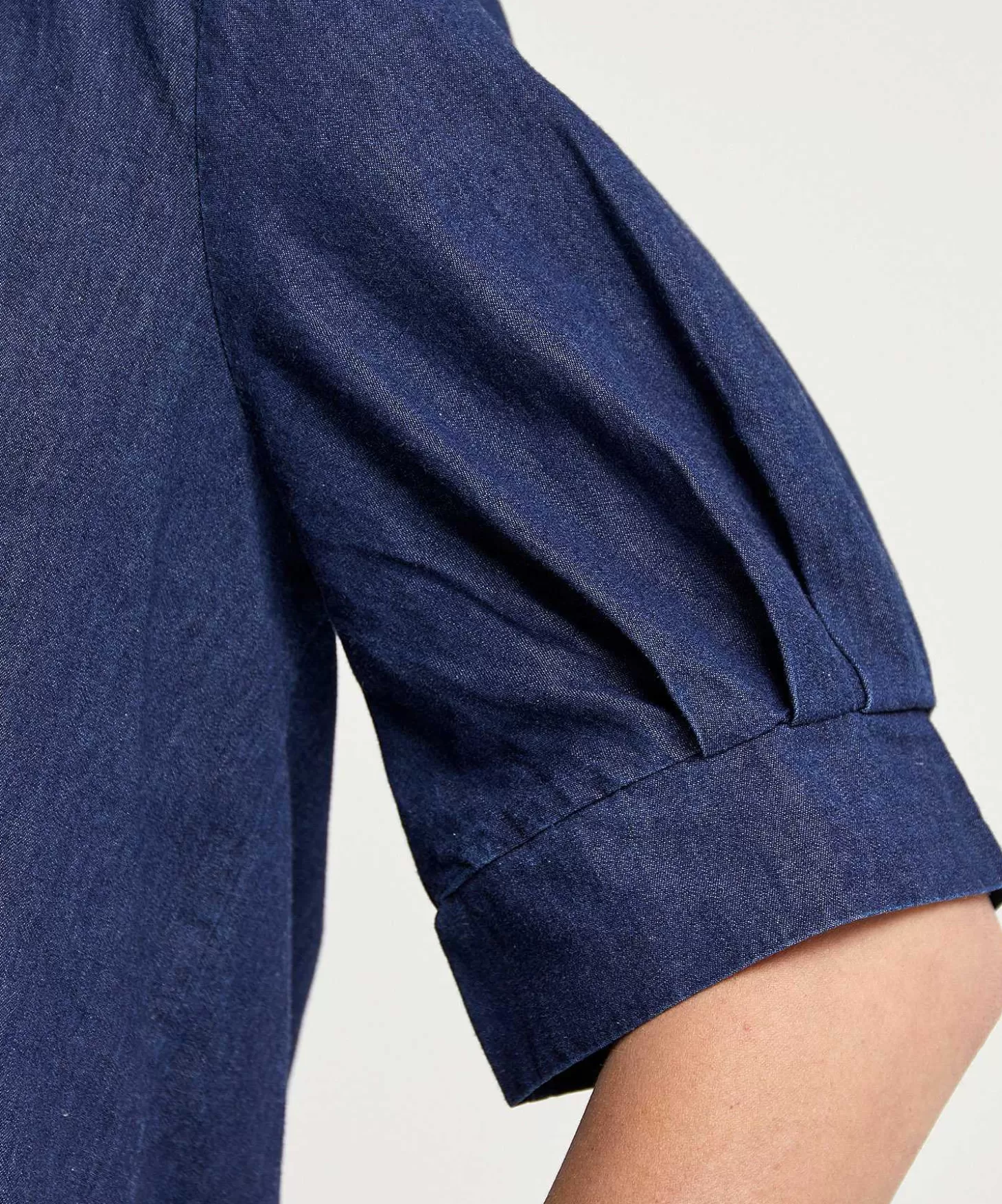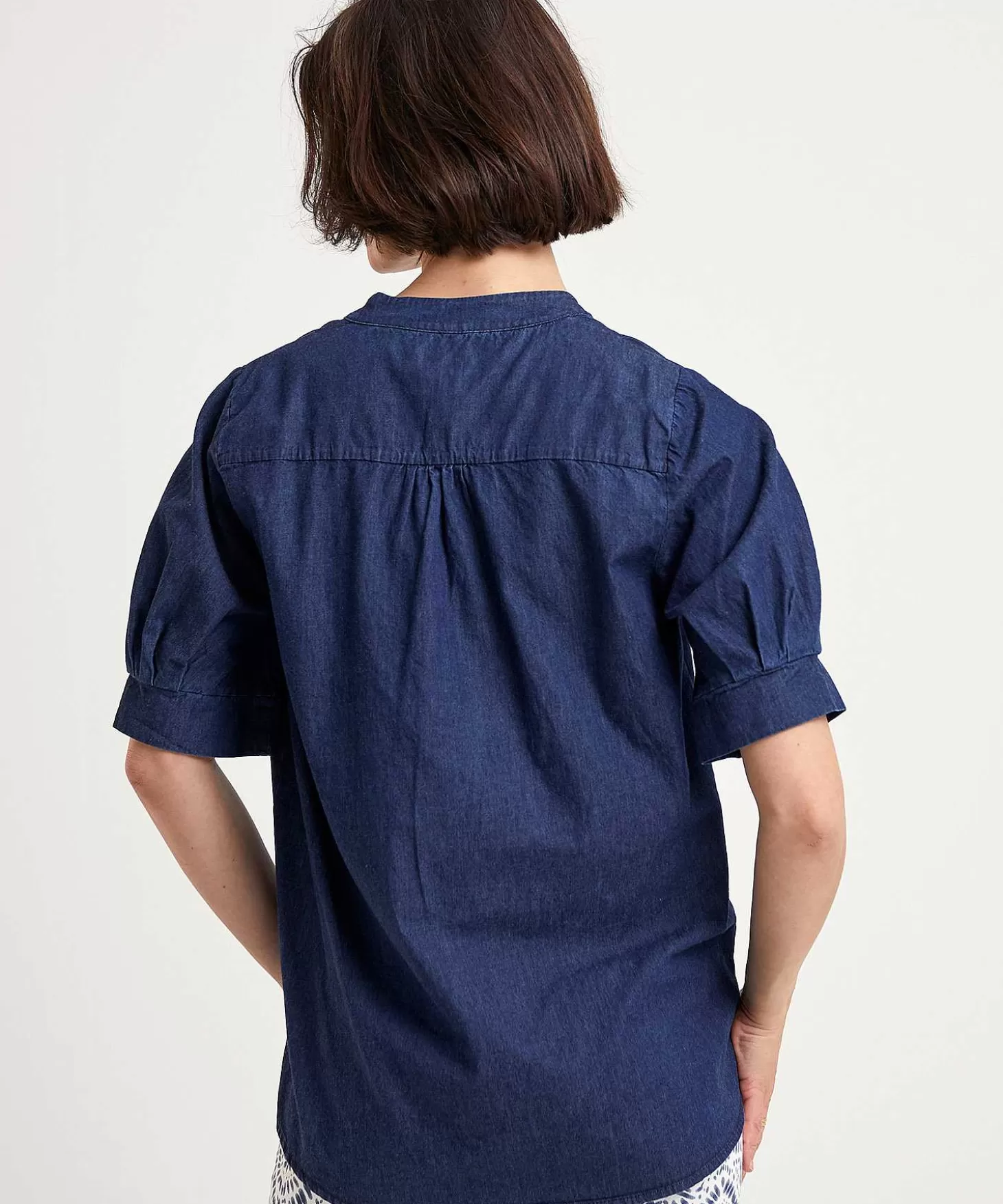 Deze Kyra Blouse In Donkere Egale Denim Is Een Hele Fraaie. Voel Je Haar Soepele Dunne Denim En Zie Je Haar Kniphals Met Overslag En Korte Mouw Met Plooitjes Bij De Manchet? Onder De Pas Achter Bevinden Zich Meer Plooitjes Voor Een Elegante Stofval En Dit Model Loopt Uit Naar Onderen En Heeft Een Ronde Zoom. Achter Iets Langer Dan Voor Combineert Sanne Perfect Met De Kyra Palazzo Broek Ikatprint Chantal En Loafers. Maar Ook Samen Met De Kyra Mesh Wikkelrok Tie-Dye Sandra + Laarsjes Creëer Je Een Boho Stijltje. Samenstelling: 100% Lyocell.