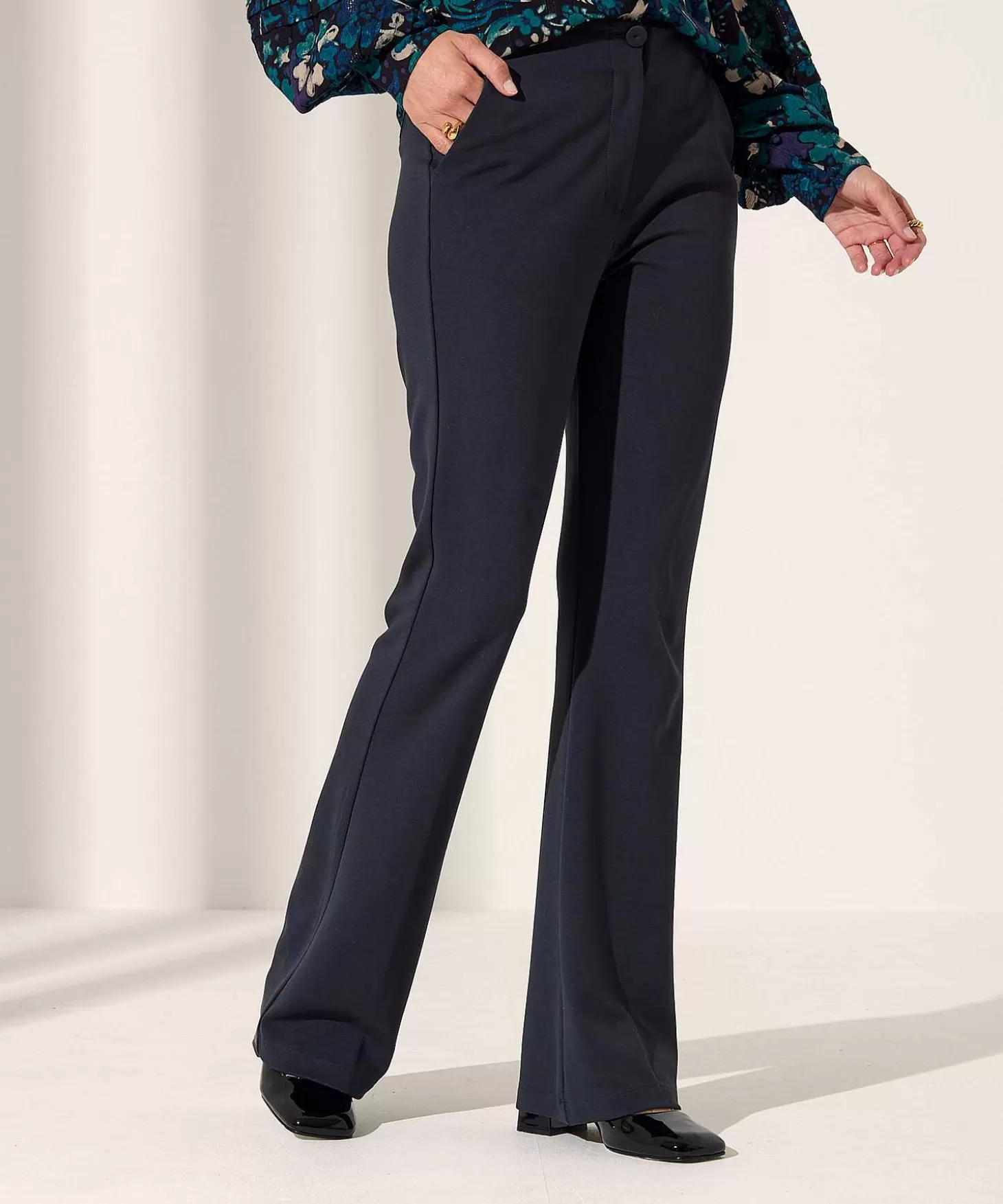 Stijlvol Combineren Met Comfort, Dat Is Absoluut Mogelijk Met Pantalon ‘Charlotte’ Uit De Najaarscollectie Van Kyra. Charlotte Heeft Een Hoge Taille En Flared Pijpen Met Persvouwen Op Het Voorbeen. Ze Is Gemaakt Van Een Stevige Iets Stretch Jersey Kwaliteit, Deze Jersey Is Warm Genoeg Voor Het Najaar En De Winter En Toch Ook Zalig Soepel In Het Dragen. Combineer Met Een Stijlvolle Blouse Of Een Verfijnd Truitje Of Een Goede Blazer. Maak De Look Af Met Een Paar Hakken Of Kies Voor Een Fijne Sneaker. Deze Basis Pantalon Geeft Je Outfit Bij Iedere Combi Een Boost. Samenstelling: 69% Viscose, 26% Polyester, 5% Elastan.