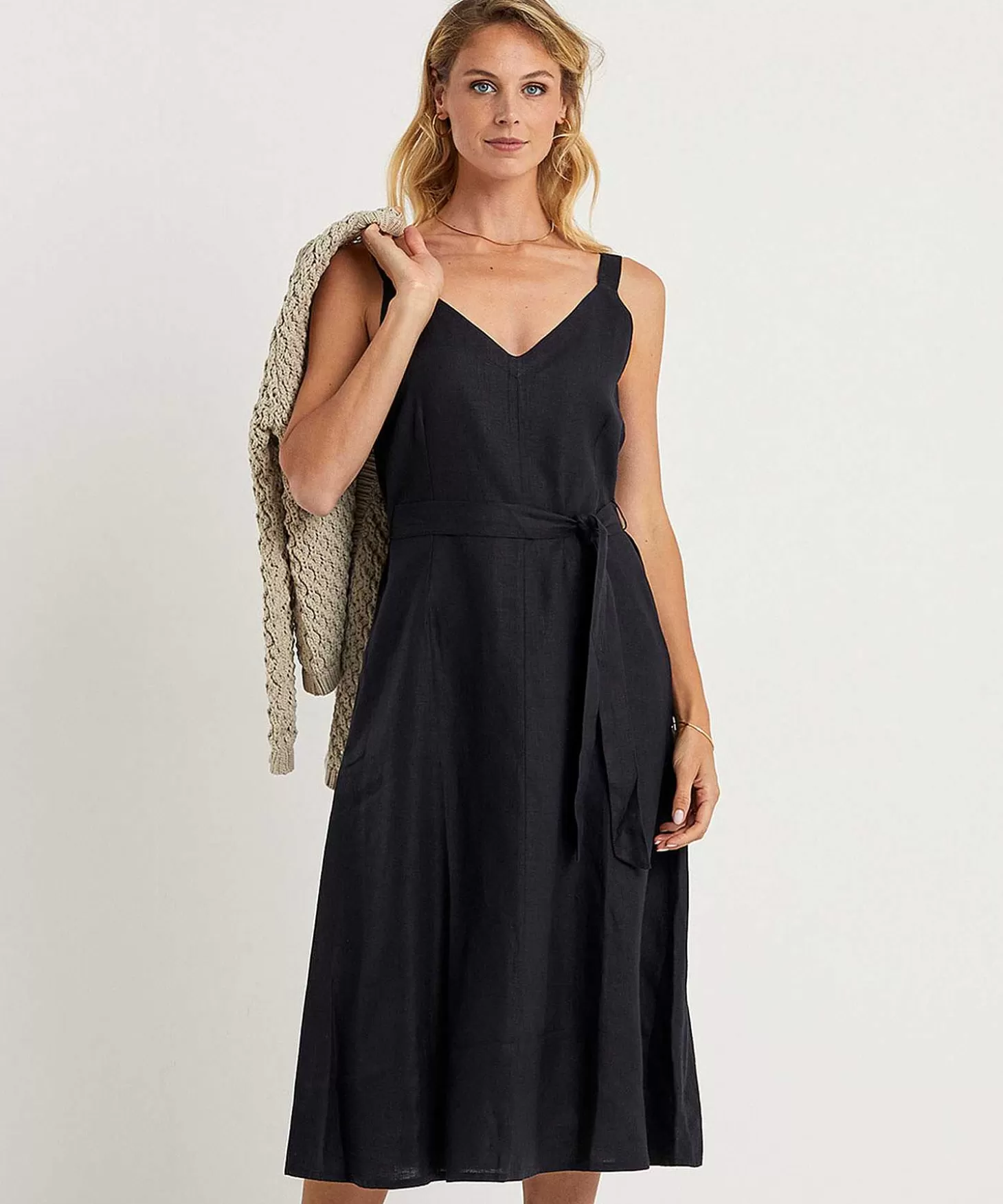 Van Puur Linnen Is Deze Kyra Jurk Met Spaghettibandjes Ready For Summer. Zie Je Haar Minimalistische Ontwerp, V-Hals Met Schouderbandjes, Strikceintuur, Blinde Rits Achter En Uitlopende Rok In Allround Zwart Of Pittig Lime? Je Personaliseert Deze Luchtige Jurk Moeiteloos Voor Elke Gelegenheid Met De Juiste Accessoires. Met Een Sjaaltje, Sieraden Of Een Opvallende Tas, Zie Je Er Met Lennie Steeds Weer Anders Uit. Je Combineert Haar Nu Nog Met Een Kyra Vestje En In De Zomer Als Haar Fraaie Zelf Met Sandaaltjes, Loafers, Sneakers Of High Heels. Samenstelling: 100% Linnen.