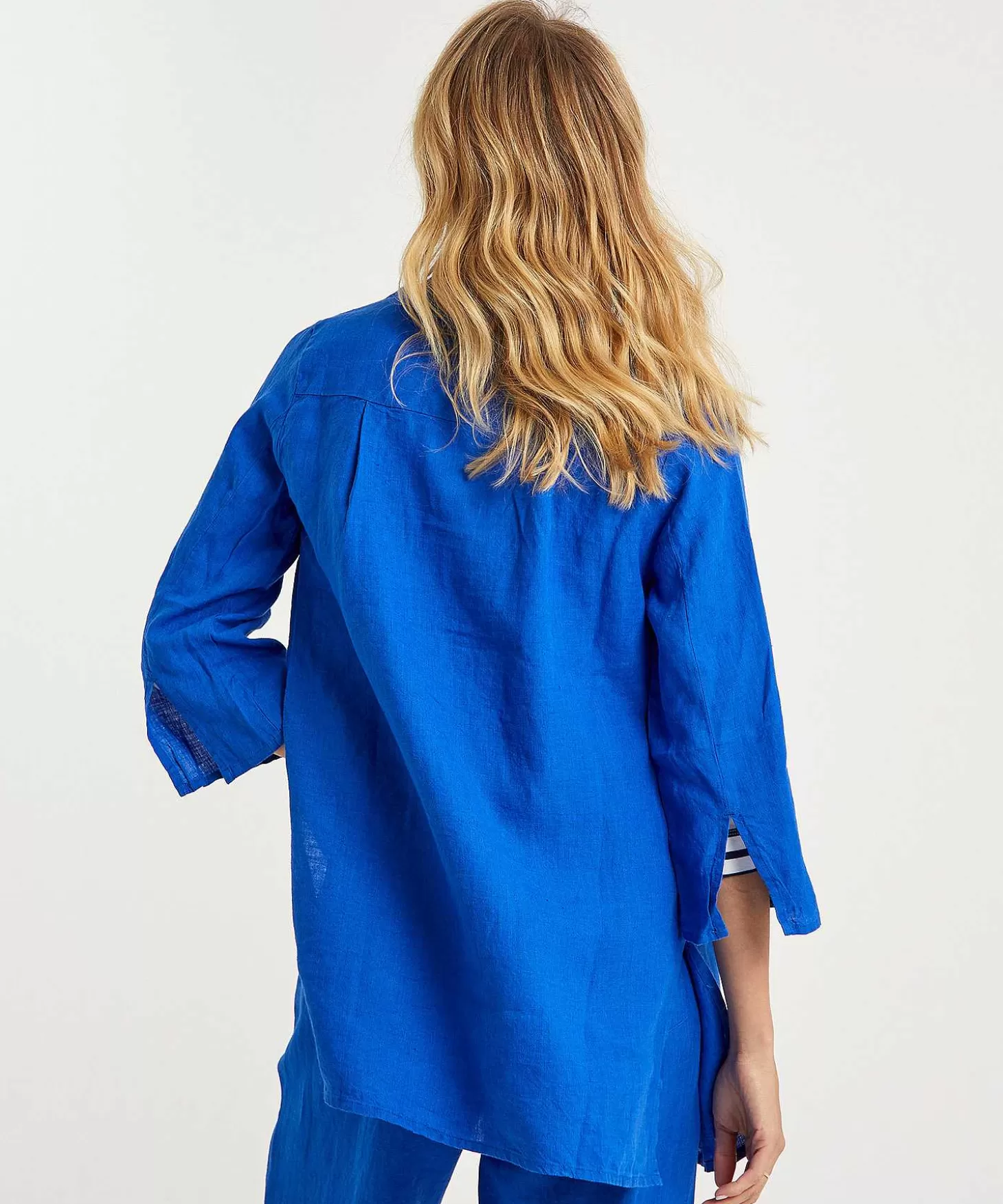 Deze Linnen Tuniekblouse Van Kyra Is De Ideale Zomerblouse. Zie Je Haar V-Hals Met Kraagje, Knoopsluiting, Rechte Zoom …