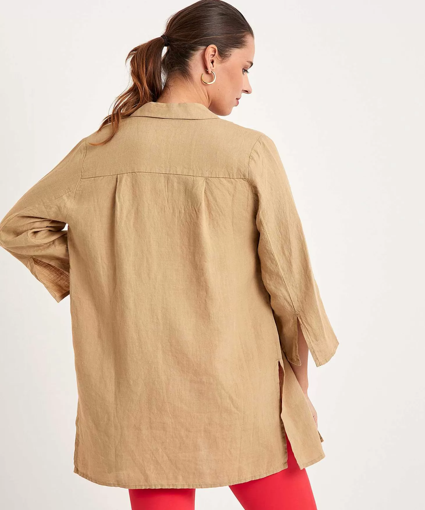 Deze Linnen Tuniekblouse Van Kyra Is De Ideale Zomerblouse. Zie Je Haar V-Hals Met Kraagje, Knoopsluiting, Rechte Zoom …