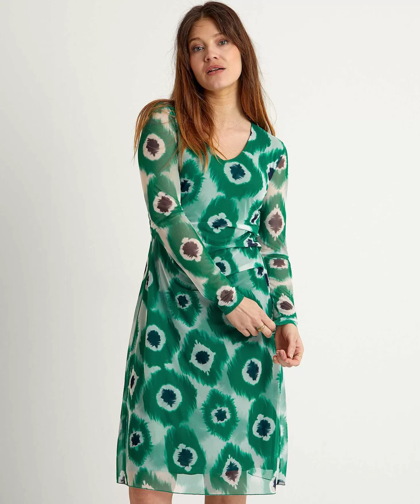 Sonja Is De Ultieme Mesh Jurk Van Kyra Met Tie-Dye Print. Zie Je Haar Gevoerde Lijfje (Jersey), V-Hals En Geraffineerde Plooitjes Op Buikhoogte? In Aangenaam Aansluitend Model Met Uitlopende Rok Draag Je Haar Met Hoge Laarzen, Loafers Of High Heels. Dankzij Haar Stretchy Materiaal Trek Je Haar Eenvoudig Aan En Uit. Samenstelling: 82% Polyetheen, 18% Elastan.