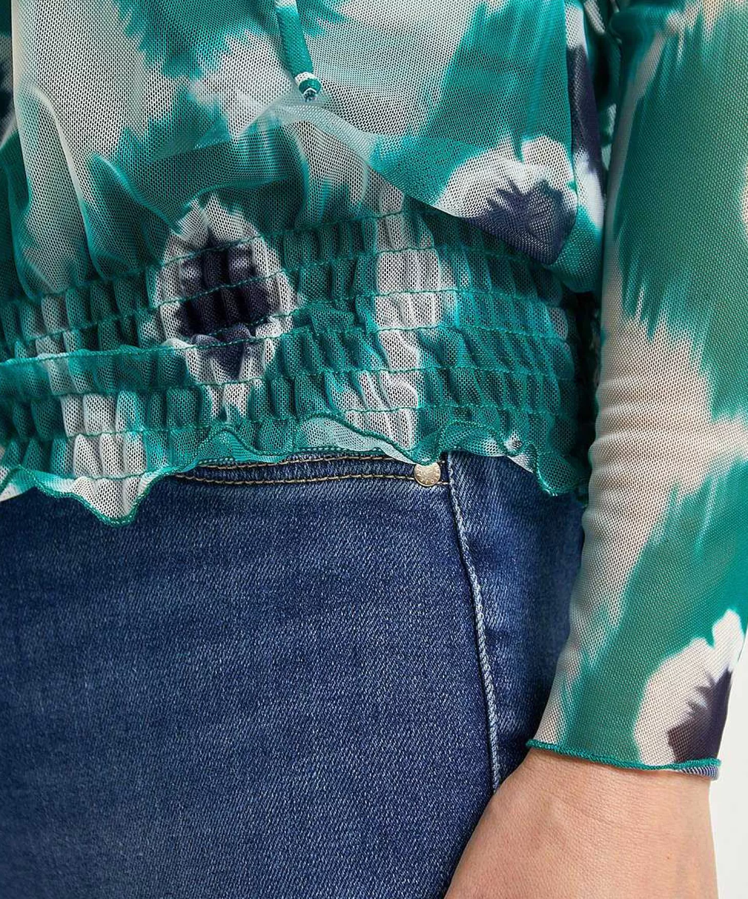 Simone Is Een Geraffineerde Kyra Top Van Mesh Met Tie-Dye Print. Met Een Jersey Gevoerd Lijfje, Mesh Mouwen, Een Knipha…