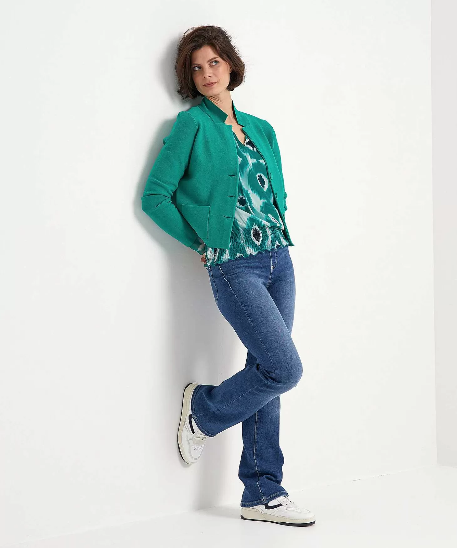 Simone Is Een Geraffineerde Kyra Top Van Mesh Met Tie-Dye Print. Met Een Jersey Gevoerd Lijfje, Mesh Mouwen, Een Kniphals Met Striklinten En Een Gesmockte Zoom Is Deze Top Super Feminien. I Een Kleurpalet Van Smaragdgroen Met Wit En Nachtblauw Combineert Ze Perfect Met Kyra Wide Leg Broek Hetty En High Heels. Maar Ook Met De Matching Kyra Mesh Wikkelrok Tie-Dye Sandra En Loafers Creëer Je De Ultieme Co-Ordset. Samenstelling: 82% Polyetheen, 18% Elastan.