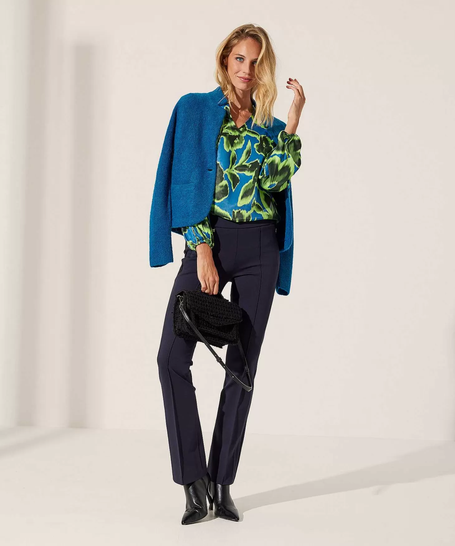 Silky & Flowery Flirt Deze Silky Kyra Blouse Met Het Leven. Wat Een Betoverende Watercolour-Print Van Bloemen Op Chique Glanzende Rayon/Viscose. Vanaf Een Petrol Blauwe (Teal) Ondergrond Spatten De Donkergroene Flowers Je Tegemoet Omlijst Door Grillige Limoengroene Kaders. Zie Je Haar Verder Minimalistische Lijntje Met Kniphals In V-Vorm, Elastisch Manchet, Korte Coupenaden En Zijsplitjes? Je Draagt Attina Met Kyra Broek Charlotte En Loafers Naar Je Werk Of Een Feestje. Maar Ook Met Een Jeans En Laarsjes Ben Je Casual Chique Op Je Best. Samenstelling: 77% Rayon, 22% Viscose, 1% Elastan.