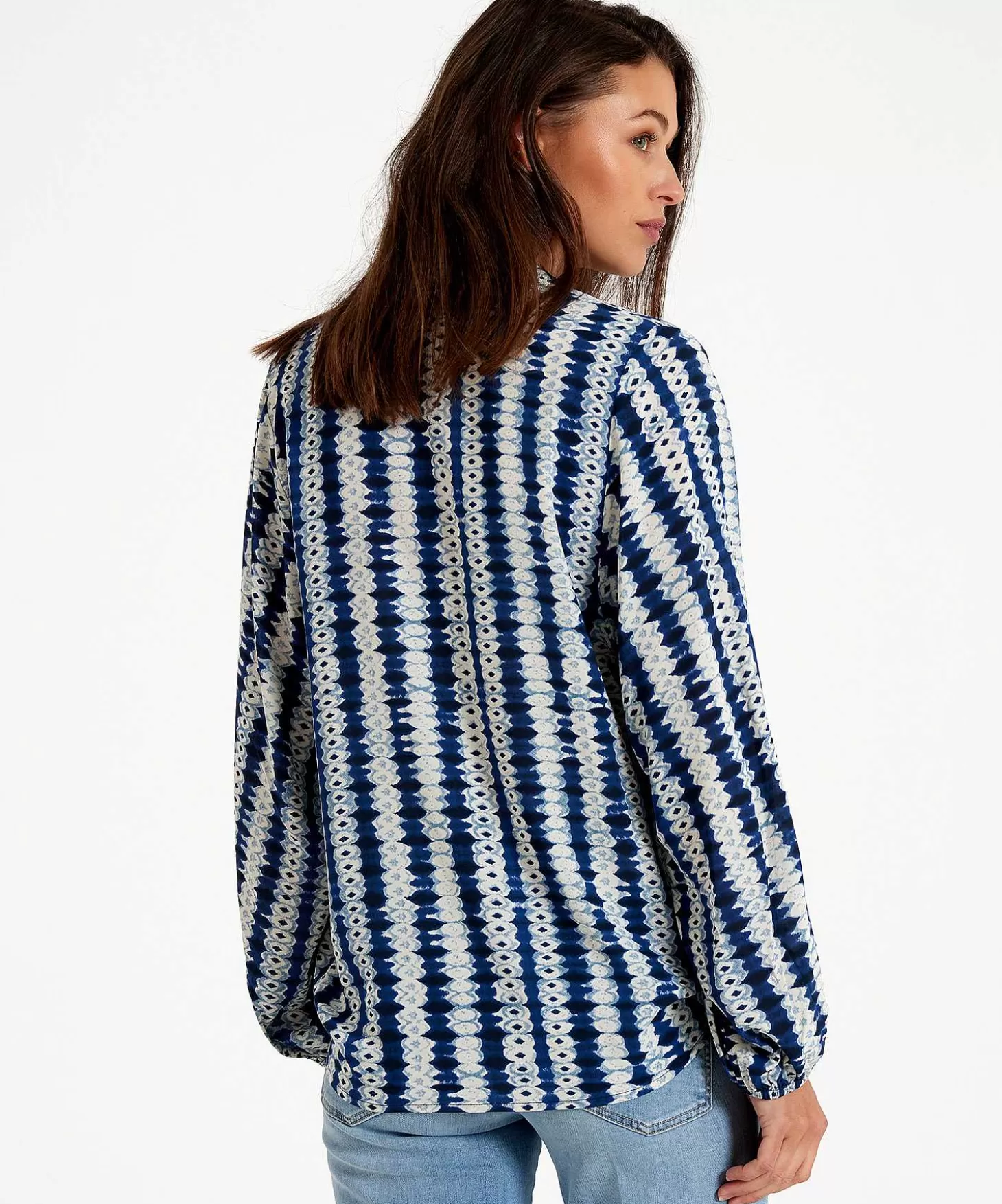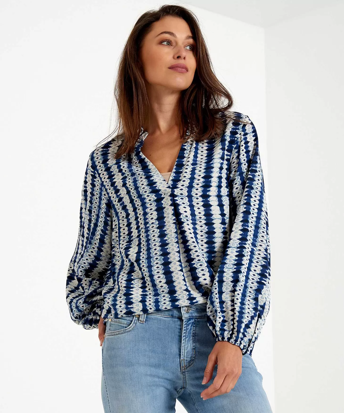 Deze Kyra Blouse Met Speelse Tie Dye Stripes Is Ware Eye-Candy. Zie Je De Verticale Tie Dye ‘Strepen’ Bestaande Uit Kettingen Van Bolletjes In Offwhite, Licht Denimblauw, Indigo En Marine? Het Crêpe Stofje Stretcht (!) En Valt Soepel Om Je Lichaam. Met Haar Tuniekhals + Plooi Middenvoor, De Ballonmouw Met Elastisch Manchet En Het Geplooide Roezelhalsje Is Ze Feminien En Sportief Tegelijk. Match Haar Met Een Jeans Op Comfortabele Citytrip En Wat Dacht Je Van Samen Met Een Witte Pantalon + Loafers Op Een Feestje Of Kantoor? Je Hoeft Niet Langer Op Zoek(Y), Want Hier Is De Perfecte Blouse Nouky! Samenstelling: 95% Viscose, 5% Elastan.