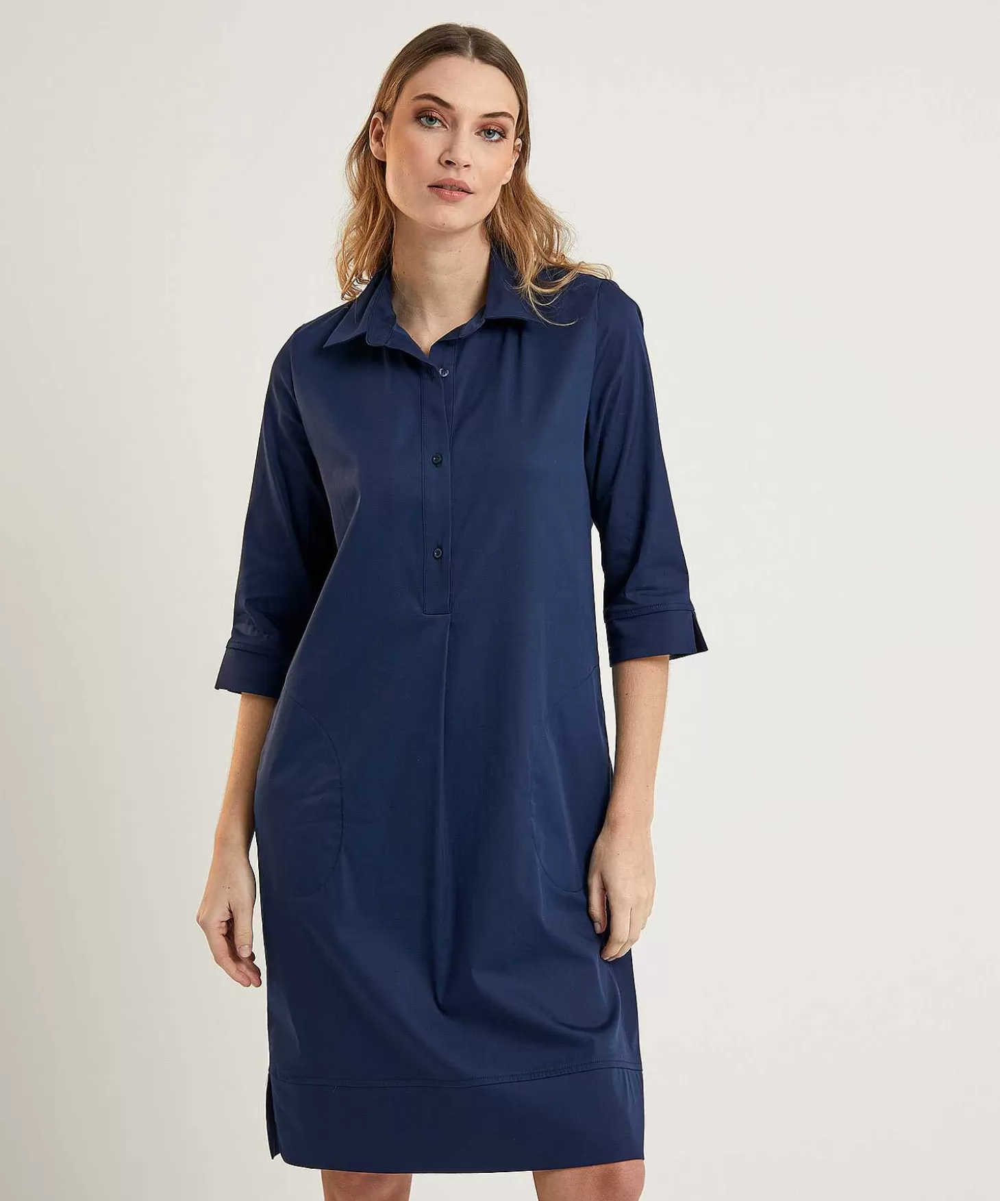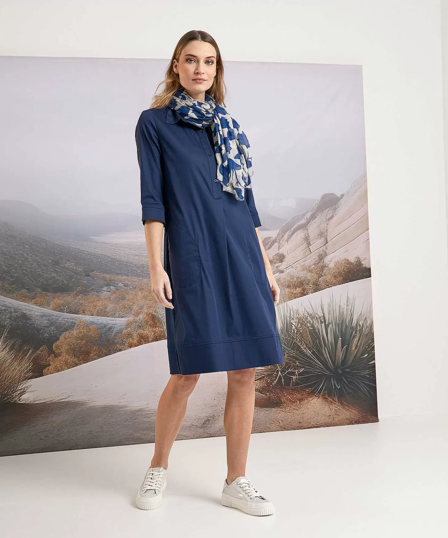 Deze Lasalle Blousejurk Flirt Met Een Tuniek Maar Is Op En Top Jurk. Zie Je Haar Minimalistische Ontwerp In Neutraal Taupe, Marine En Groenig Turquoise En Voel Je De Luxe Katoenmix In Satijnbinding? Met Haar Knoopsluiting, 3/4E Mouw Met Split En Ruime Steekzakken Draagt Ze Net Zo Relaxt Als Ze Eruitziet. In Los Model Met Splitten Aan De Zijkant Van De Zoom En Een Lengte Tot Boven De Knie, Is Het Comfortabel Én Stijlvol Kilometers Maken. Je Combineert Haar Nu Al Met Een Bretons Streepshirt Eronder + Sneakers, Maar Ook Straks Met Loafers, Espadrilles Of High Heels Ga Je Stijlvol Op Pad. Tip: Voor Een Zandlopereffect Draag Je Er Een Wikkelriem Bij. Samenstelling: 65% Katoen, 30% Polyamide, 5% Elastan.