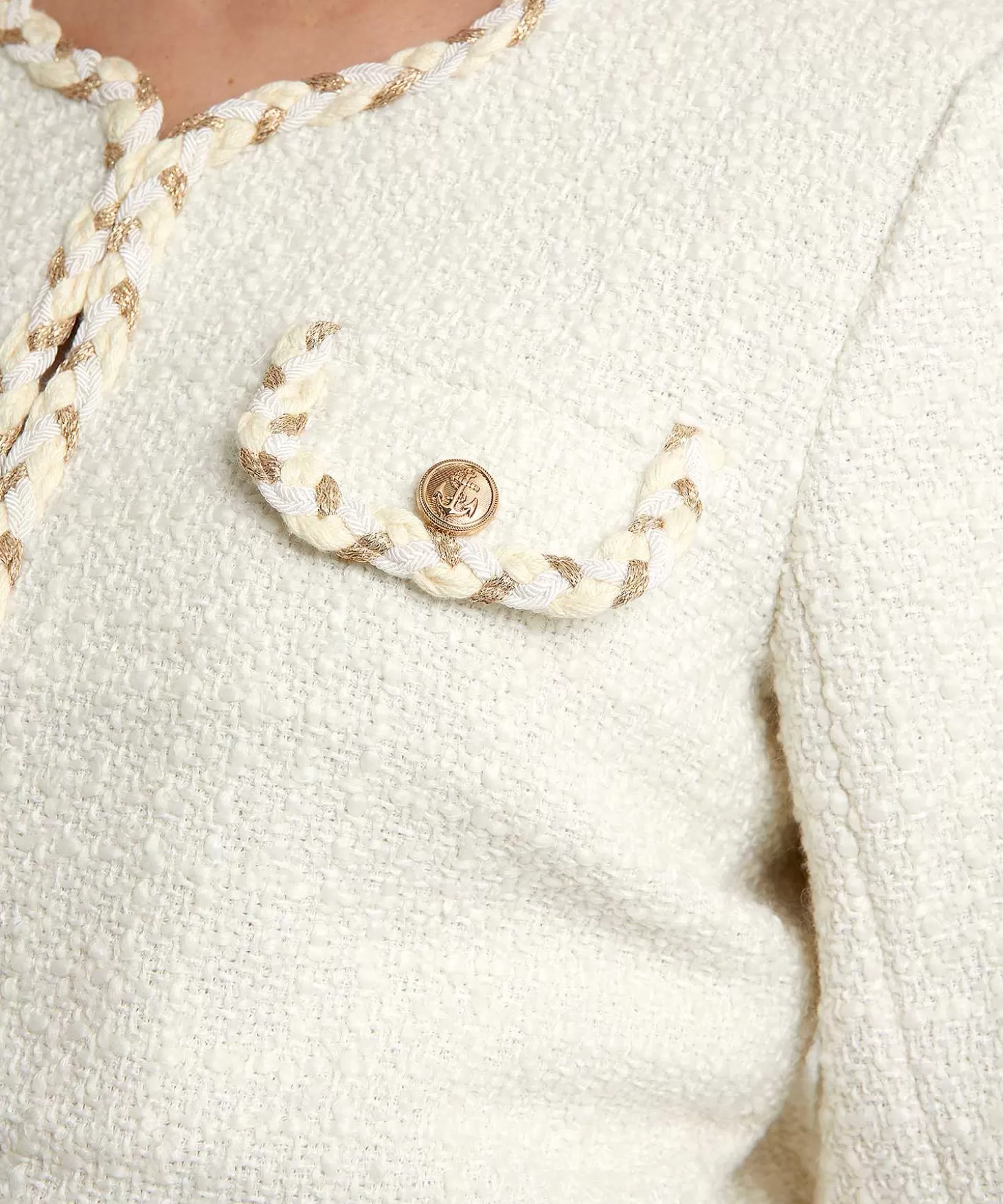 Emily In Paris Zou Verliefd Zijn Op Dit Ultieme Bouclé Jasje Van Leo& Ugo. Wat Een Schoonheid Met Haar Luxe Kwaliteit Bouclé (Satijngevoerd) Met Ronde Hals, (Fake) Borstzakjes Op Borsthoogte En Praktische Klepzakken Onderaan. In Karakteristiek Recht Model Met Contrasterend Lurex Vlechtbandjes Langs De Pandjes En Randjes En Een Fijne Haakjessluiting Waan Je Je Direct In Parijs. Haar Romige Offwhite Kleur Maakt Haar Een Klassiek Key-Item In Jouw Garderobe En Ze Geeft Elke Outfit Klasse. Je Draagt Haar Met Een Uni Top Of Crispy Witte Blouse, Een Pantalon Of Jeans + Loafers, Laarsjes Of High Heels. Samenstelling: 70% Polyester, 30% Wol.