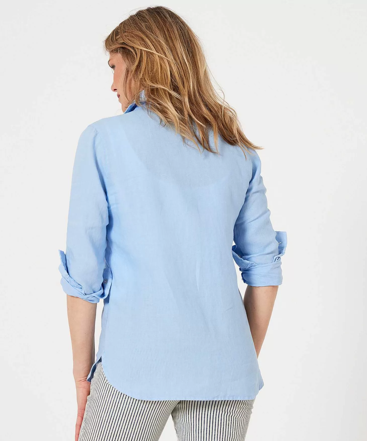 We Love Linen En Deze Linnen Blouse Overtuigt Ons Helemaal. Wat Een Luchtige Schoonheid In Rijk Linnen En Minimalistisch Model. Zie Je Haar Kraagje, Fijne Parelmoeren Knoopjes, Borstzakje En Ronde Zoom Met Splitjes? Verkrijgbaar In Fris Lichtblauw Of Vurig Koraalrood Is Er Altijd Een Kleur Naar Jouw Garderobe. Dankzij Haar Relaxte Fit Past Ze Bij Veel En Ze Geeft Elke Outfit Relaxte Laissez-Faire. Je Draagt Haar (Open) Met Een Bretons Streepsinglet, Een Jeans En Sneakers Op Stedentrip, Maar Ook Met Een Linnen Palazzo En Loafers Ben Je Op Je Traveling Best. En Wat Dacht Je Van Losjes Gedragen Op Het Strand Met Je Badpak, Shorts En Slippertjes? Samenstelling: 100% Linnen.
