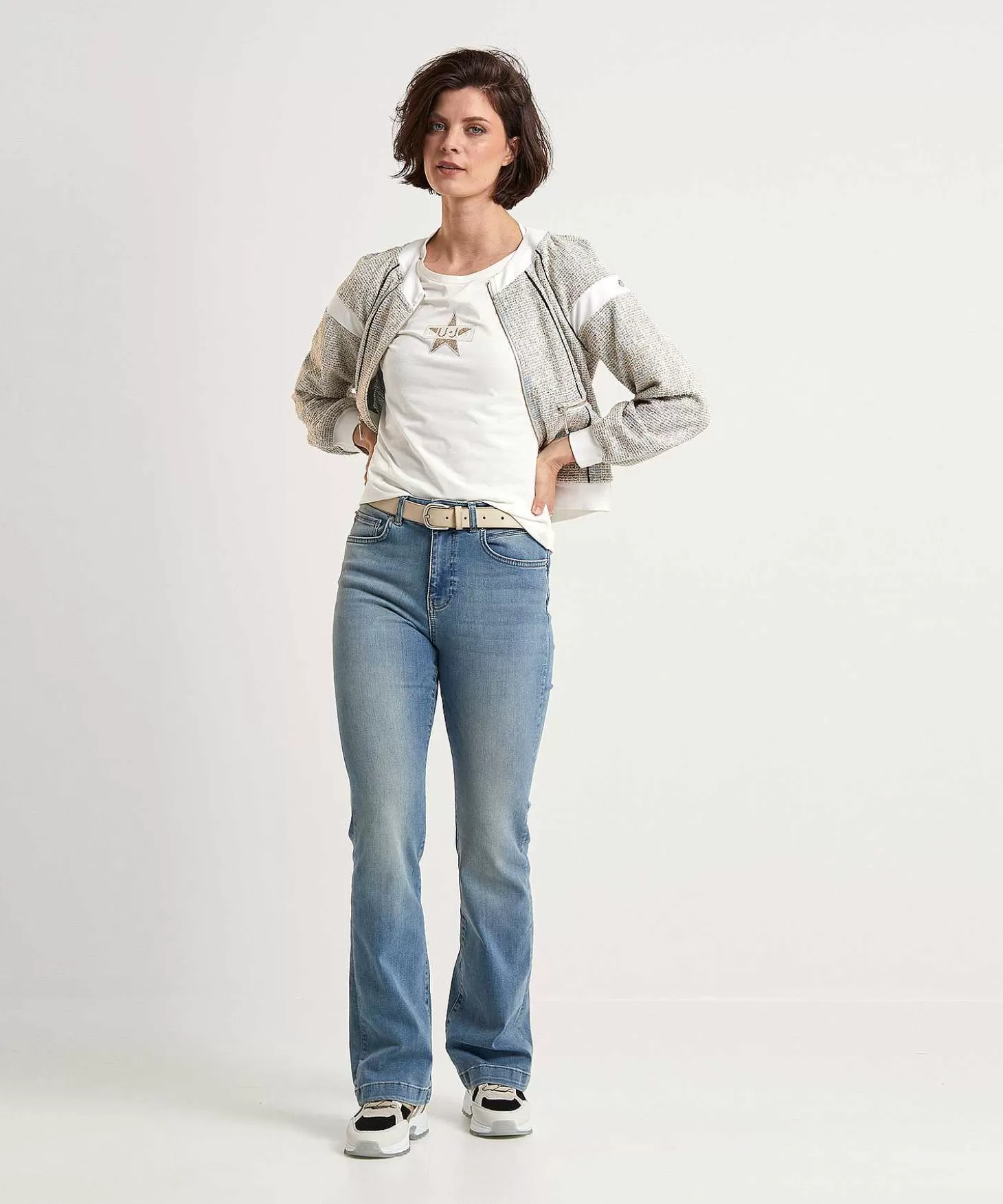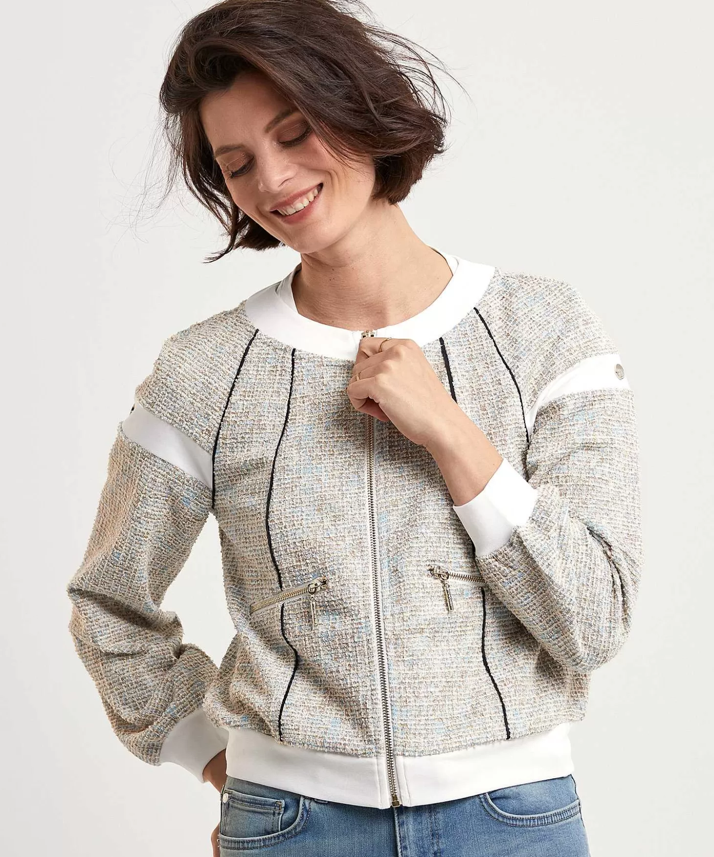 In Verfijnde Lurex Bouclé Is Dit Liu Jo Bomber Vest Niet Zomaar Een Jasje. Zie Je Haar Sportieve Lijnenspel Met Contra…