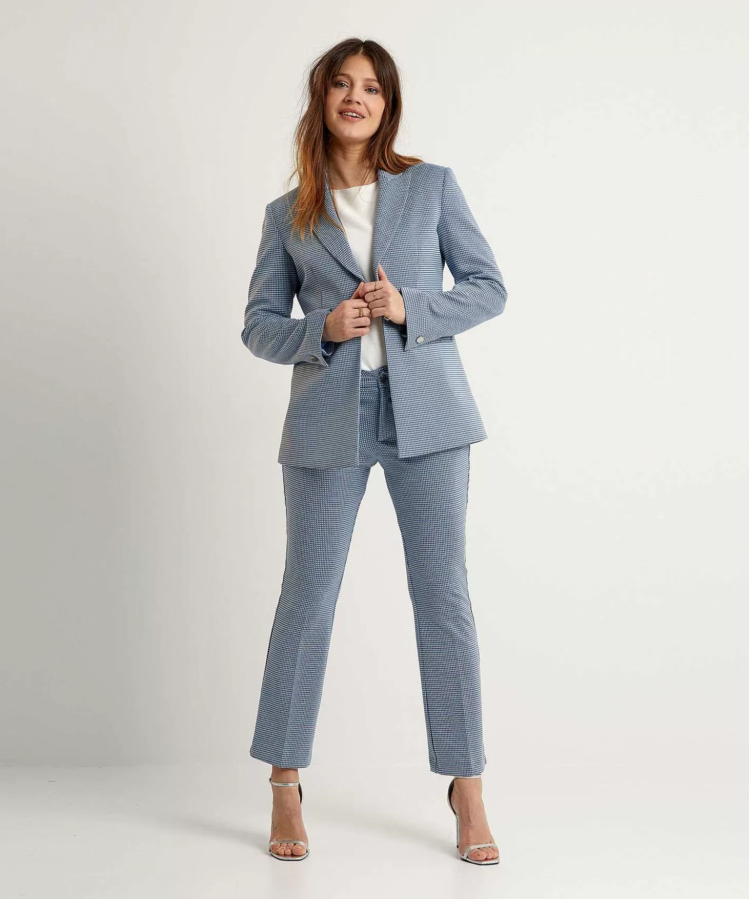 Van Fijne Jacquard Is Deze Liu Jo Broek In Korter Kick Flare Model De Perfecte Business-Pants. Voel Je Haar Stretch En Zie Je Haar Kleurpalet In Offwhite, Taupe En Blue In Minimalistisch Patroon? Flirtend Met Een Pantalon Met Haar Klassieke Sluiting En Paspels Achter Matcht Ze Perfect Met Een Witte Blouse En De Liu Jo Jacquard Blazer Minimal + High Heels Of Loafers. Met Haar Korte Uitlopende Pijpje Staat Ze Ook Mooi Met Knitwear En Laarsjes. Samenstelling: 83% Polyester, 15% Viscose, 2% Elastan. Voering: 68% Acetaat, 32% Polyester.