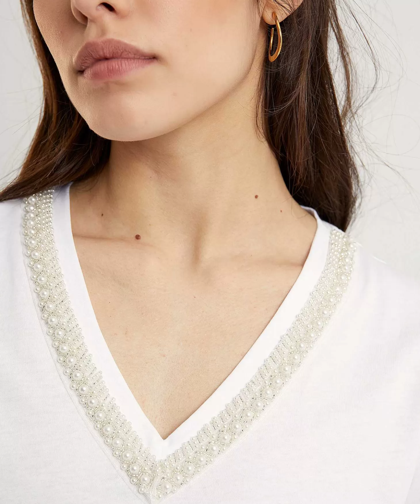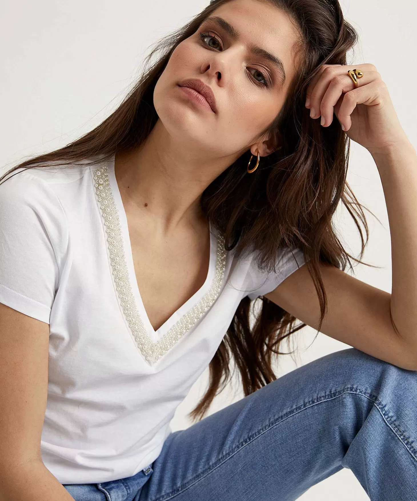 LIU JO T-Shirt V-Hals Pareltjes Discount