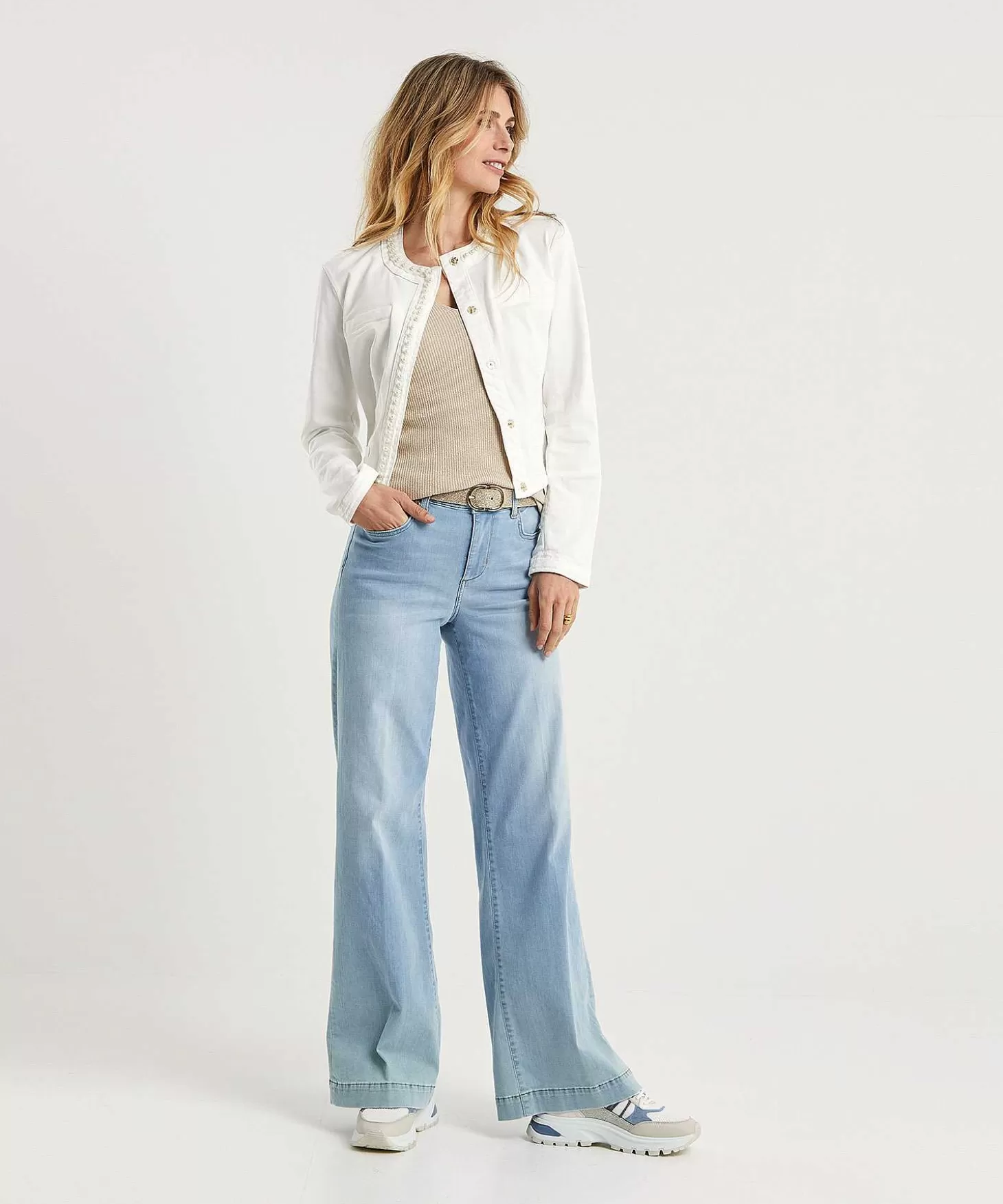 Deze Liu Jo Jeans In Wide Leg Model Heeft Een Lichte Zomerse Wassing In Stretchy Denim. Zie Je Haar Wijde Pijp Met Persvouw, Brede Zoom, Diepe Steekzakken En Metalen Liu Jo – Tag Op De Achterzak? Dit Is Zo’N Jeans Die Je Het Jaar Fashionable Rond Draagt En Je Combineert Haar Met Veel. Van Fijne Knitwear, Een Blouse, Bretonse Streeptop Tot Een Sweater Of Sportief T-Shirt Met Een Sneaker, Loafer, Laarsje Of High Heel. Samenstelling: 91% Katoen, 7% Elastomultiester, 2% Elastan.