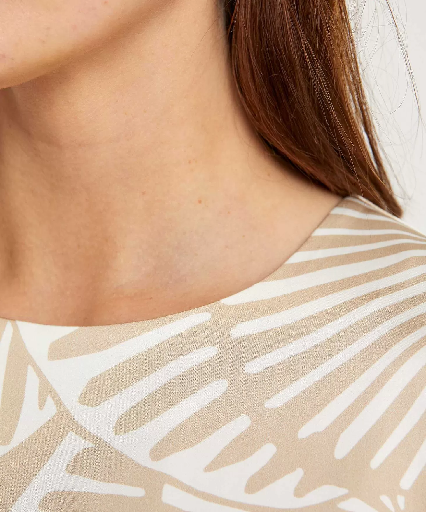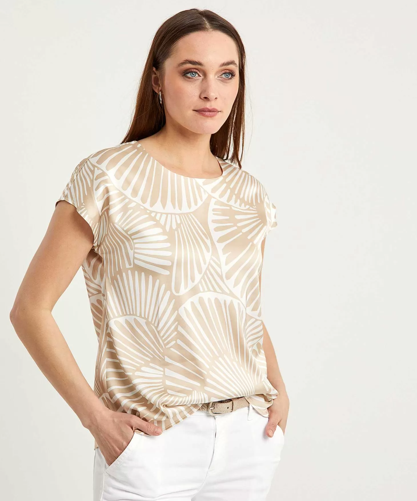 Deze Silky Blouse In Two Tone Bladprint Van Louis And Mia Is Een Chique Aanwinst Op Jouw Garderobe. Voel Je Haar Zijdezachte Viscose En Zie Je Haar Ronde Hals, Key-Hole-Sluiting Achter En Kort Aangeknipt Mouwtje? Je Draagt Deze Luchtige Blouse Met Een Linnen Palazzo En Loafers In Ton Sur Ton Tinten, Maar Ook Met Een Rok En Espadrilles Creëer Je Een Zomerse Look. Naar Een Feestje Combineer Je Haar Met Een Silky Rok En High Heels. Samenstelling: 96% Viscose, 4% Elastan.