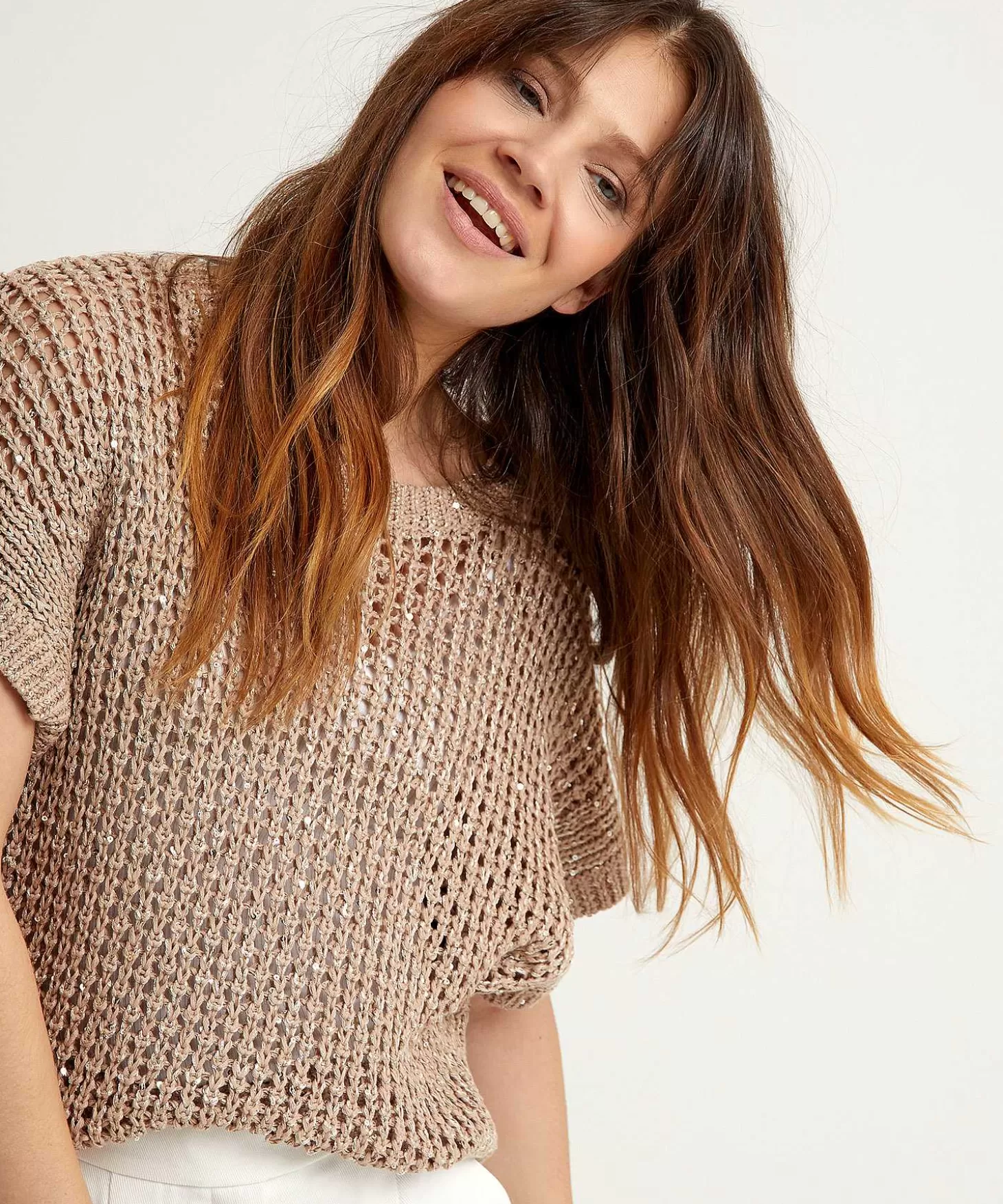 Luisa Cerano Gehaakte Trui Korte Mouw Pailletjes Hot