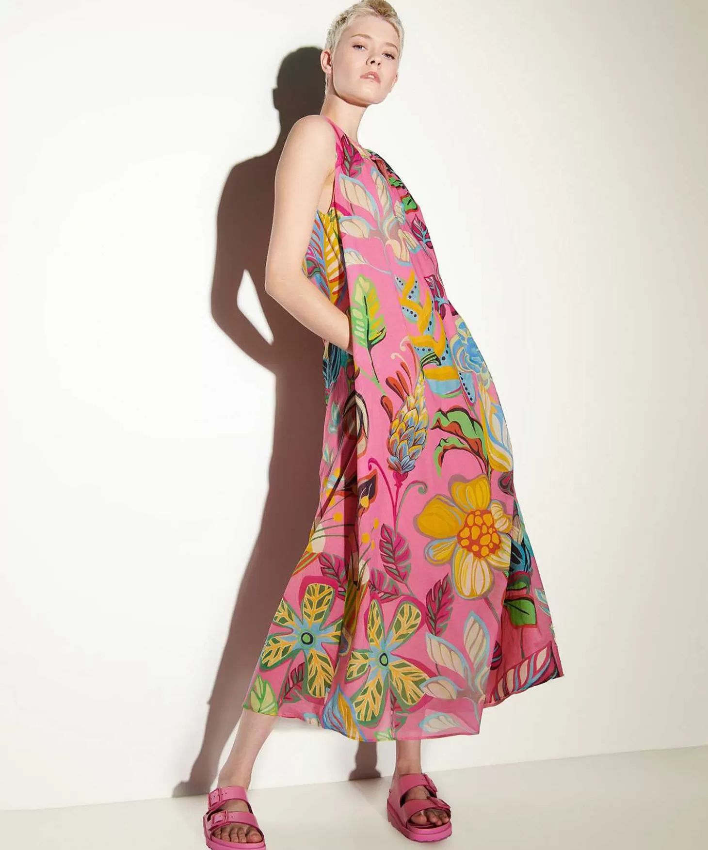 Tropical & Colourful Straalt Deze Luisa Cerano Jurk Met Tropische Bloemprint Je Tegemoet. Uit De Colour Play Collectie Doet Ze Haar Kleurrijke Thema Eer Aan En Haar Luchtige Katoen Is Viscose Gevoerd. Mouwloos Met Een Key-Hole-Sluiting En A Peek A Boo Achter, Verborgen Zakjes, Een Losse Fit En A-Lijn Tot Boven De Enkel Is Ze De Ultieme Zomerjurk.