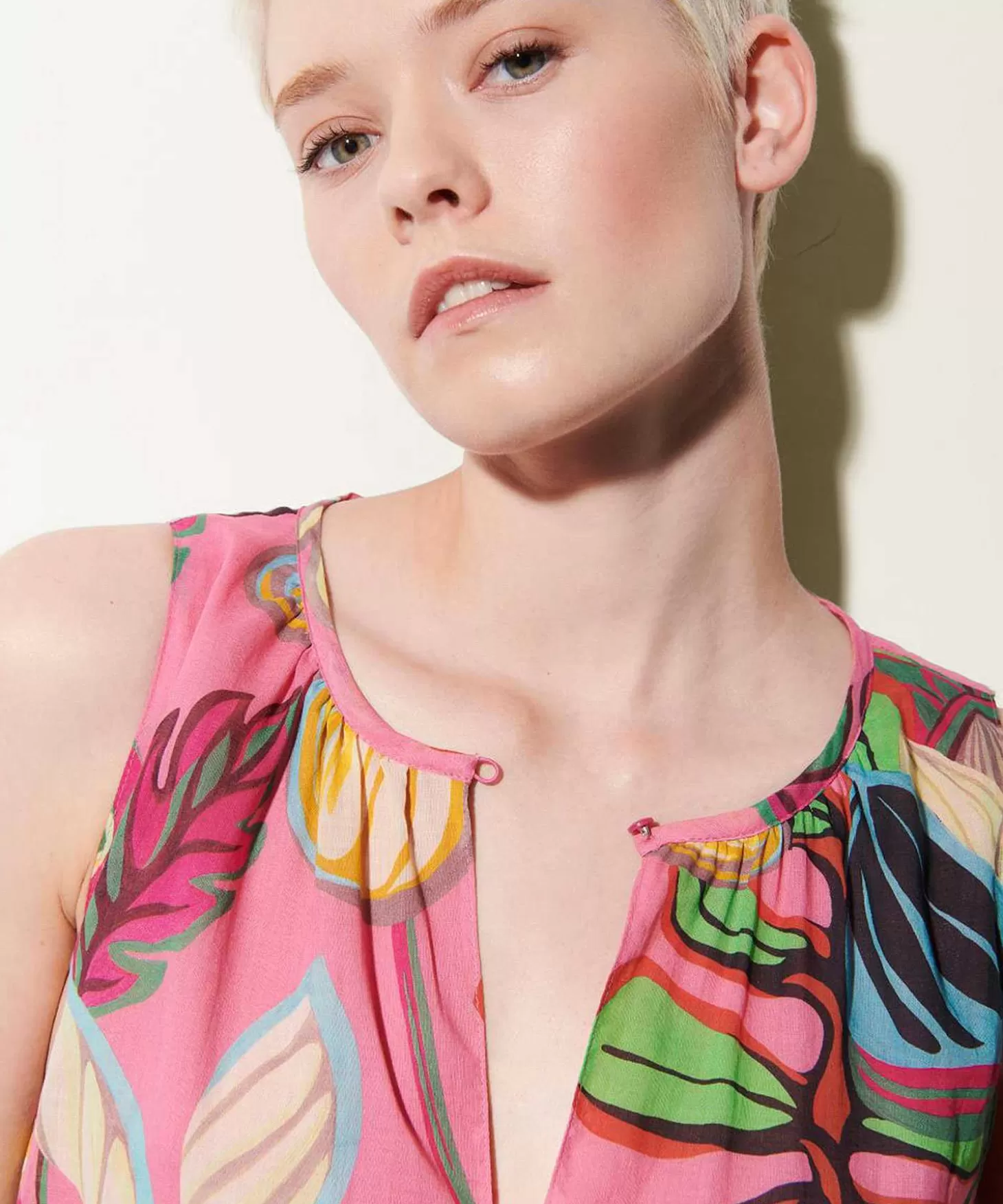 Luisa Cerano Mouwloze Jurk Tropische Bloemprint Clearance