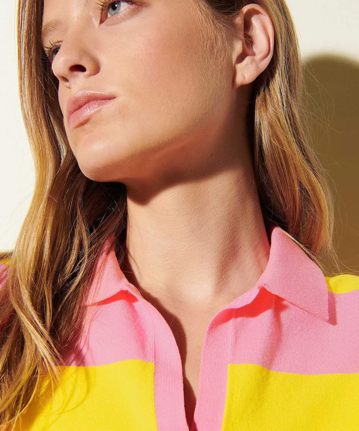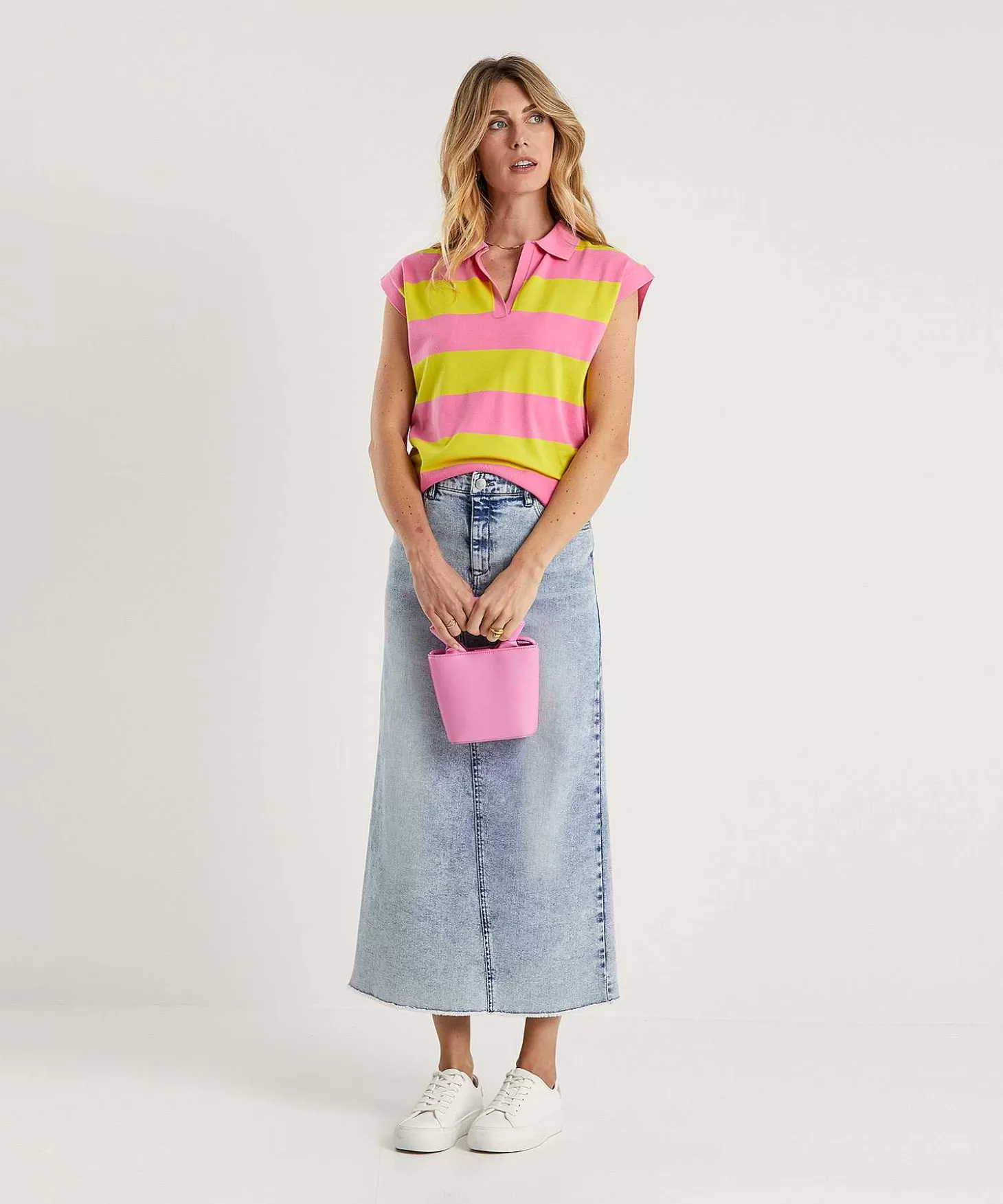 Sportief En Mouwloos Is Dit Luisa Cerano Poloshirt Met Zomerse Strepen Ware Eye-Candy!. Dankzij De Frisse Late 80’S/Early 90’S Kleurcombinatie Pink/Yellow (Lime) Geeft Deze Top Elke Outfit Een Frisse Twist. Ze Heeft Een Polokraagje, Een Kort Aangebreid Mouwtje En Een Losse Korte Fit. In Een Luchtige Katoenmix En Rechtsreeks Uit De Colour Play Collectie Wordt Dit Jouw Zonnige Favoriet.