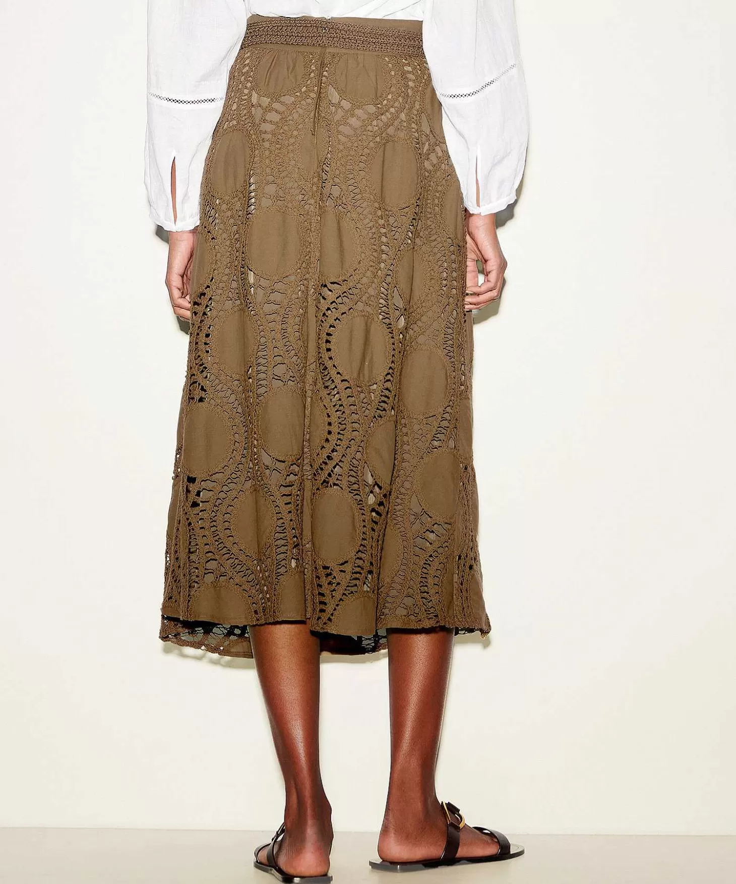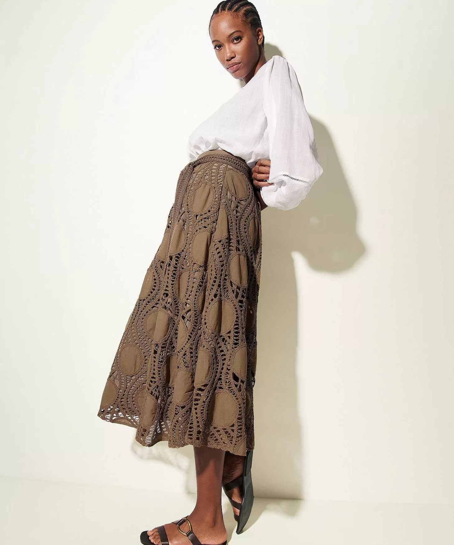 Crochet Meets Circles In Deze Gehaakte Rok Van Luisa Cerano Met Glanzende Voering. In De Aardse Kleur Havanna Trekt Het…