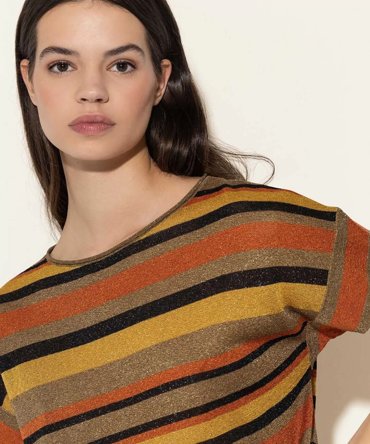 Stripes Meet Lurex Met Dit Luisa Cerano Truitje In Kleuren Geïnspireerd Op Exotic Spices. Van Burned Orange En Oker To…