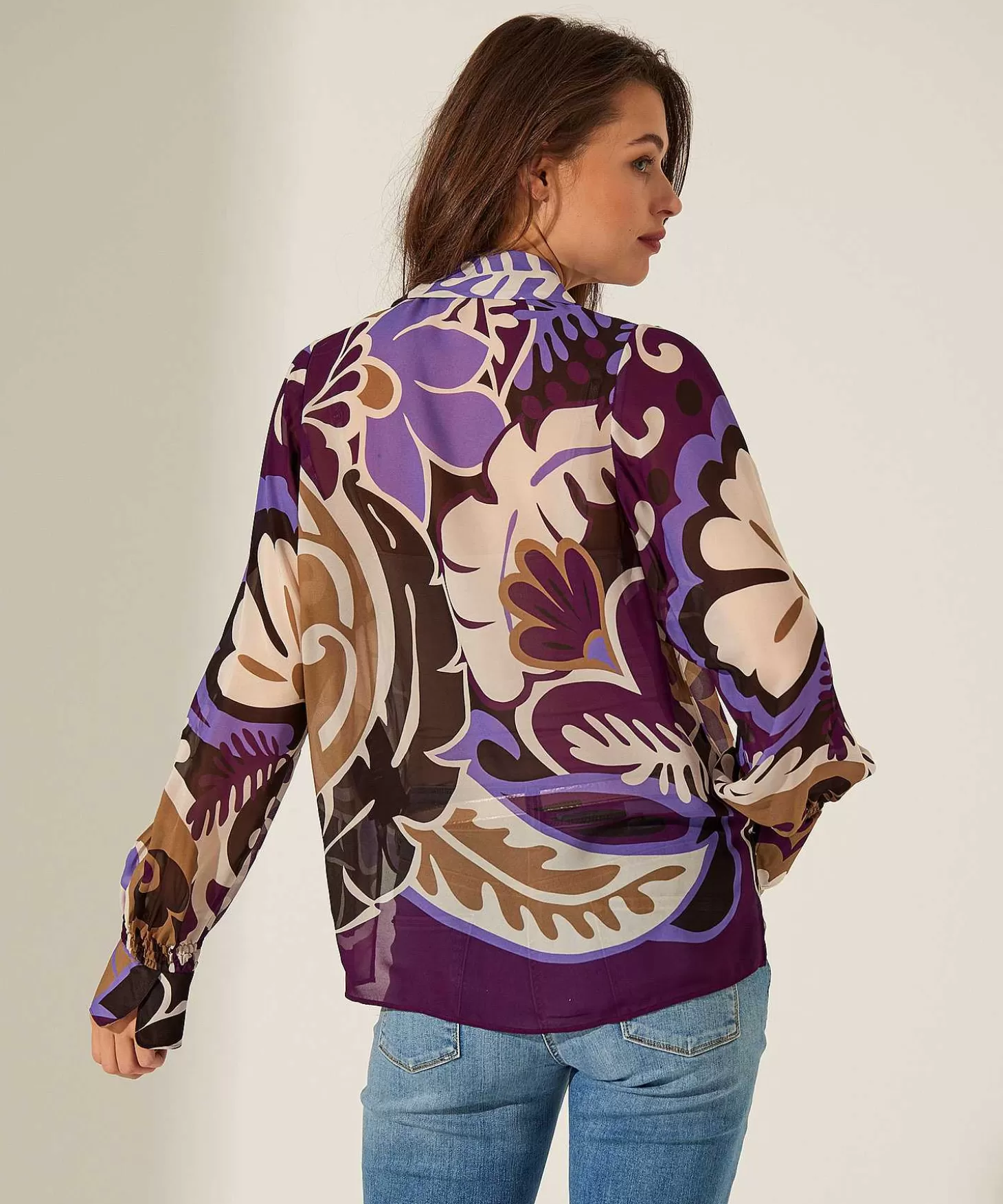 Uit Het Purple Rain Thema Heeft Deze Voile Luisa Cerano Blouse Met Flowerprint Absoluut Flower Power. Semitransparant E…