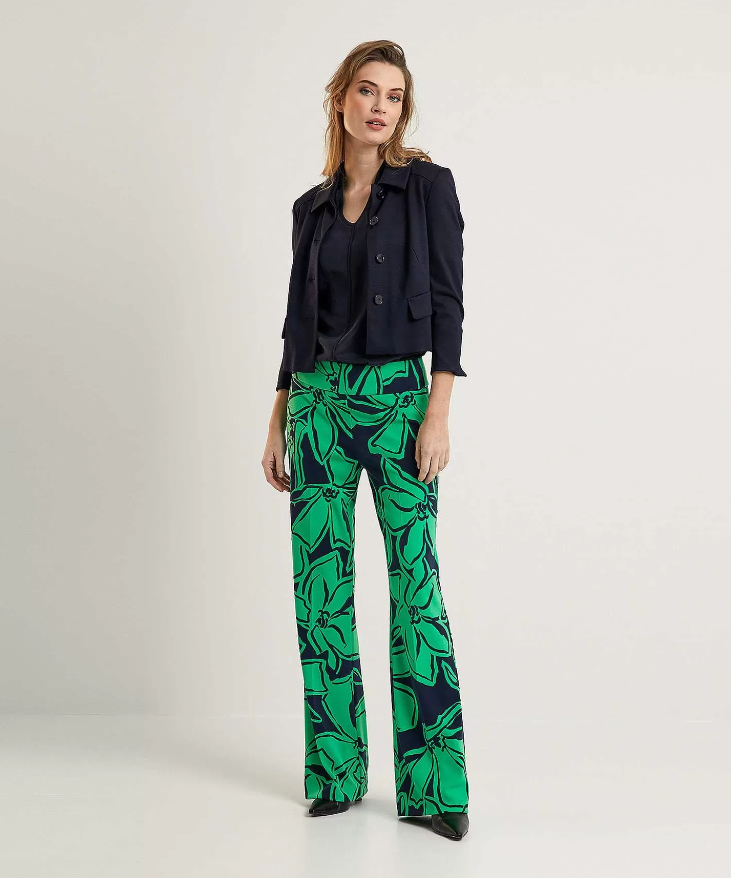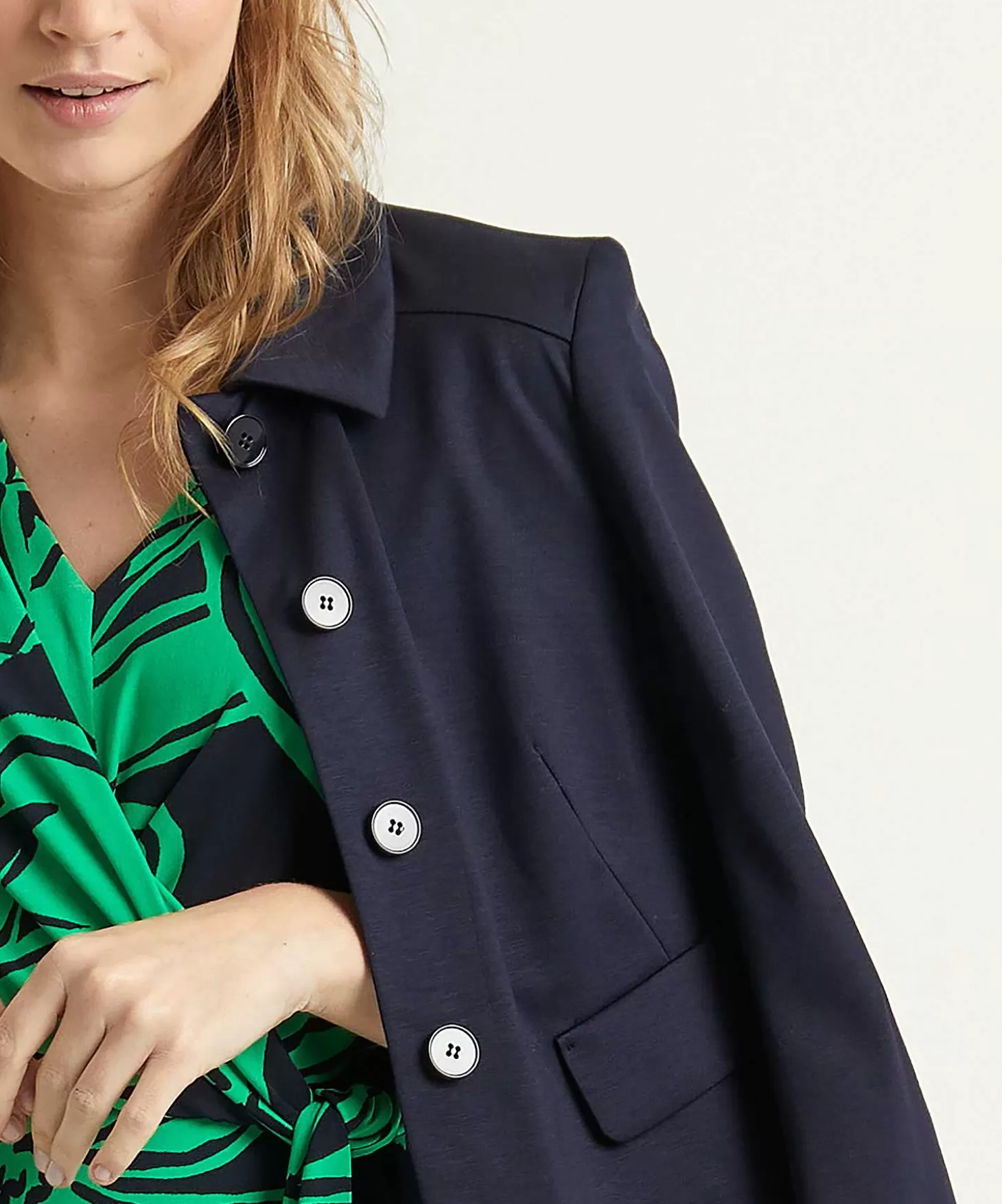 Dit Korte Marc Cain Jasje In Fijne Punto Jersey Flirt Met Het Klassieke Jackie O. Jacket, Maar Is Helemaal Van Vandaag. Voel Je Haar Soepele Materiaal Met Aangename Stretch En Zie Je Haar Elegante Details? Naast Het Platte Kraagje Heeft Ze Figuurnaden, (Fake) Klepzakken, 3/4E Mouw Met Split En Geraffineerde Schoudernaden. In Klassiek Marine En In Kort Model Draag Je Haar Met Een Witte Crispy Blouse, Een Jeans En Laarsjes Naar Kantoor Of Op Citytrip. En Wat Dacht Je Van De Combinatie Met Het Marc Cain Shirt Halflange Mouw En De Matching Pantalon Fordon + High Heels Naar Een Party? Marc Cain Additions. Samenstelling: 69% Viscose, 29% Polyamide, 2% Elastan. Stof 2: 94% Cupro, 6% Elastan. Mouwvoering: 100% Polyester.