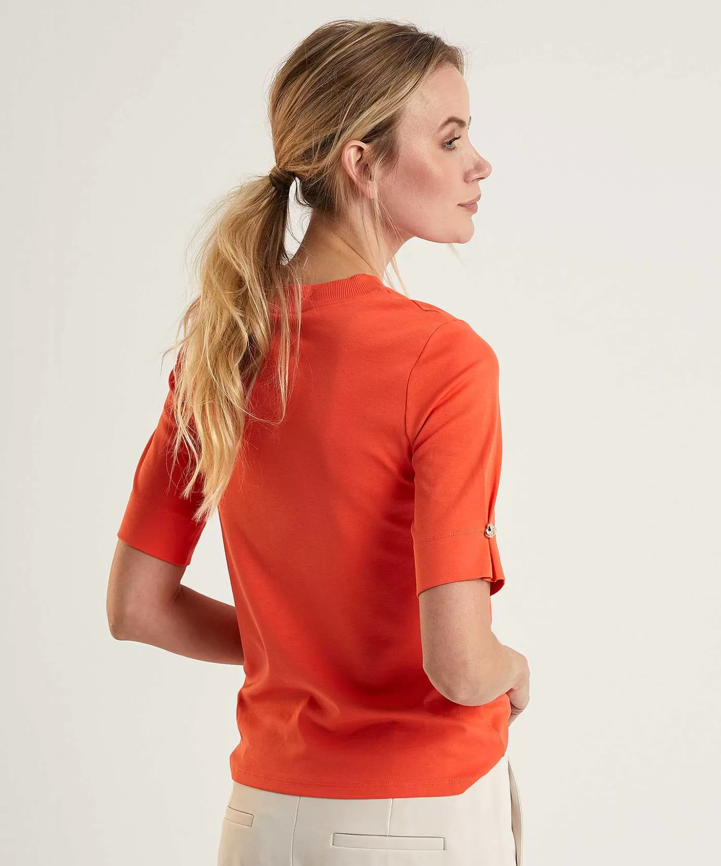 Vier Het Leven Met Dit Verfijnde Marc Cain Shirt In Vurig Bright Tomato (Oranjerood). Wat Een Flamboyante Kleur En Zach…