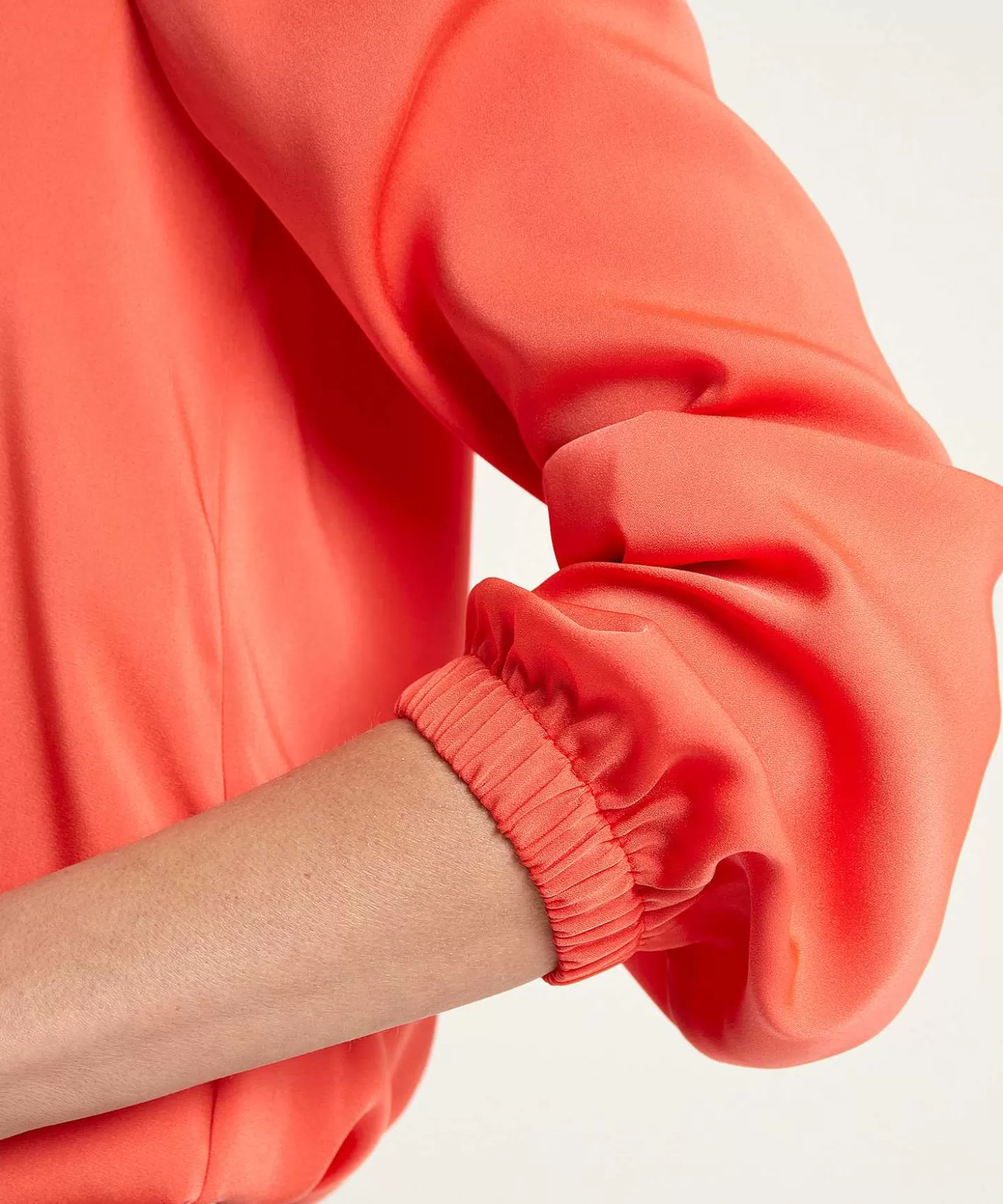 Silky En Zijdezacht Straalt Deze Marc Cain Collections Blouse Met Polo Kraag Je Tegemoet. In Bright Tomato (Oranjerood)…