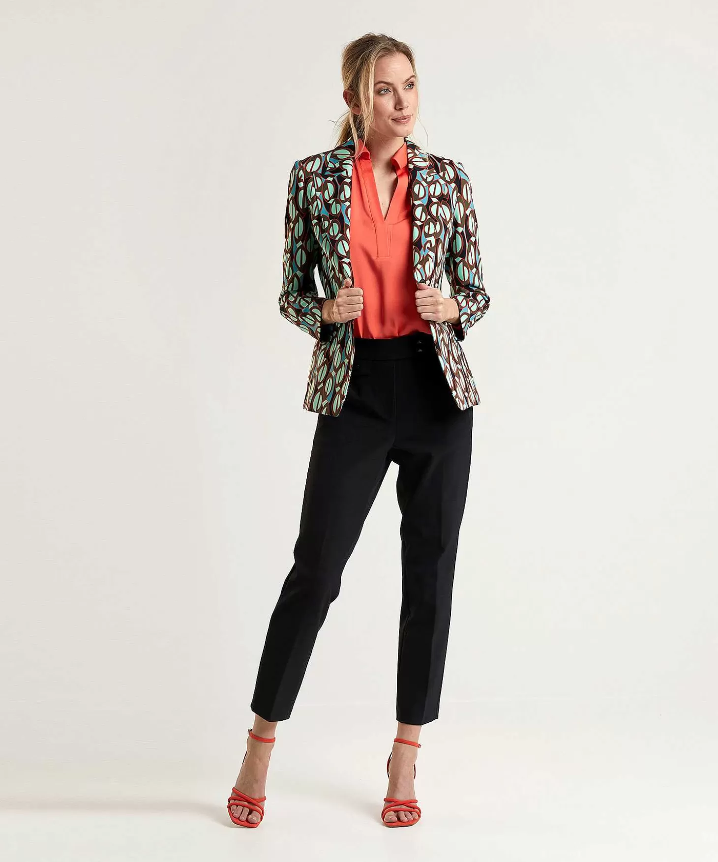 Silky En Zijdezacht Straalt Deze Marc Cain Collections Blouse Met Polo Kraag Je Tegemoet. In Bright Tomato (Oranjerood) En In Minimalistisch Ontwerp Met Een Diepe Overslag V-Hals + Kraag, Elastische Manchetjes En Een Ronde Zoom Danst Ze Elegant Om Je Lijf. Je Draagt Dit Pittige Model Met De Marc Cain Broek Scuba Multicolor En Laarsjes Naar Kantoor Of Een Feestje En Wat Dacht Je Van Samen Met Een Pantalon Of Jeans + Loafers? Uit Het Thema Graphic Booster. Samenstelling: 100% Polyester.