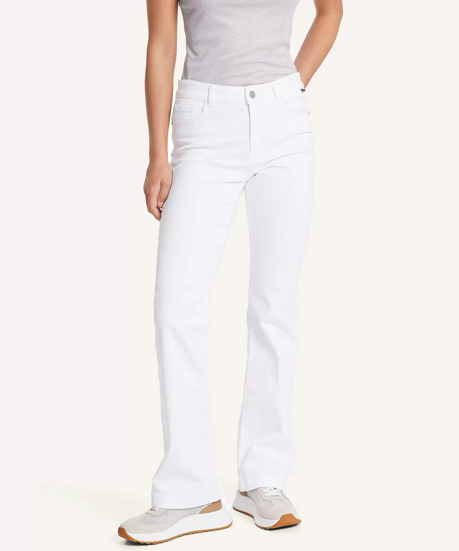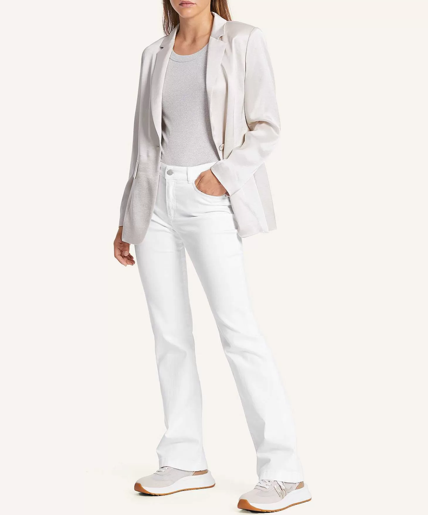 Faro Is Een Duurzame Flared Jeans Van Marc Cain Met Het Rethink Together Label. Zie Je Haar Zomerse Witte Kleur, Kleurr…