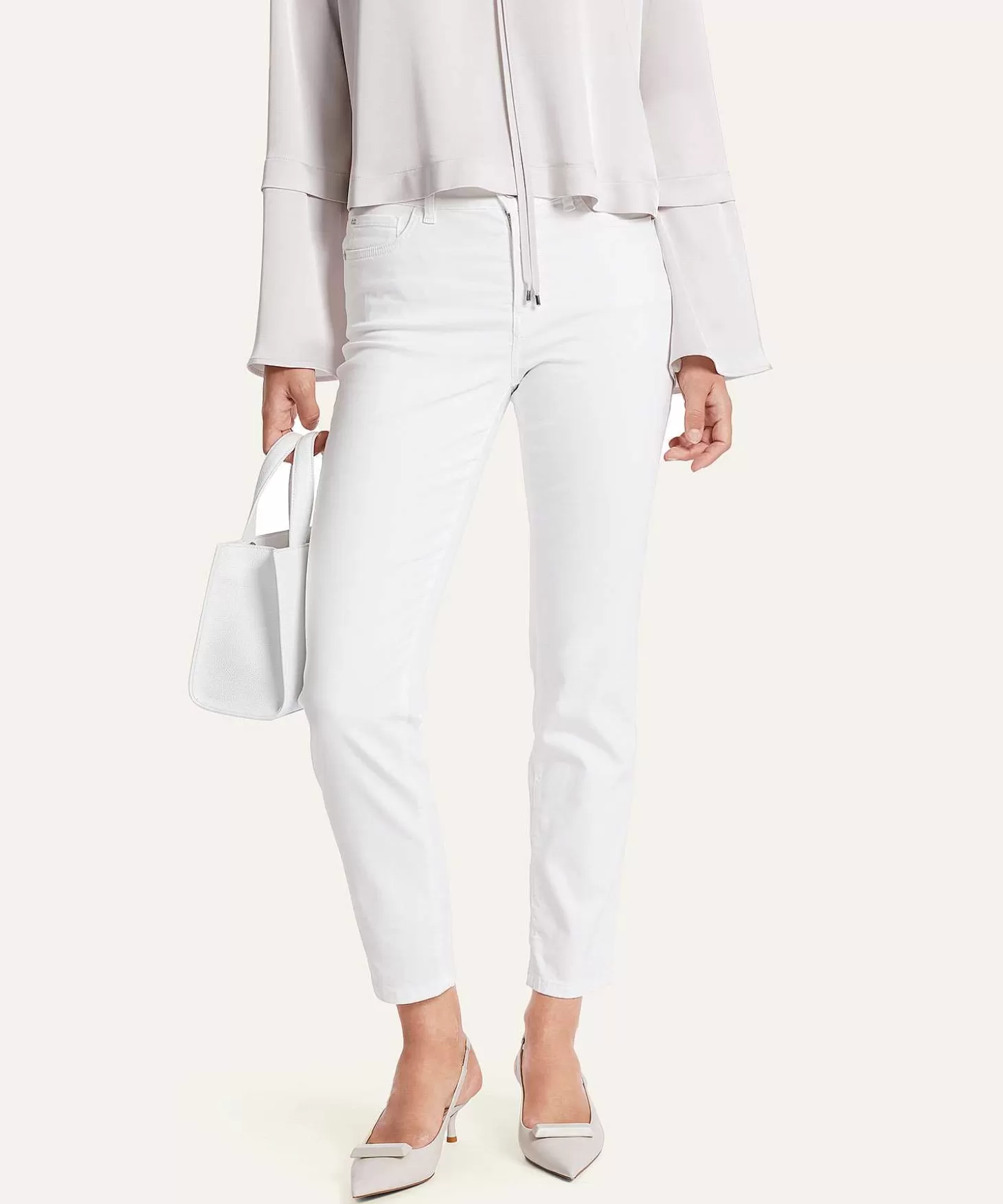 Silea Is Een Marc Cain Jeans In Slim Fit Model In De Perfecte Neutralen Wit, Biscuit En Marine. In Een Relaxt Lichaamsv…
