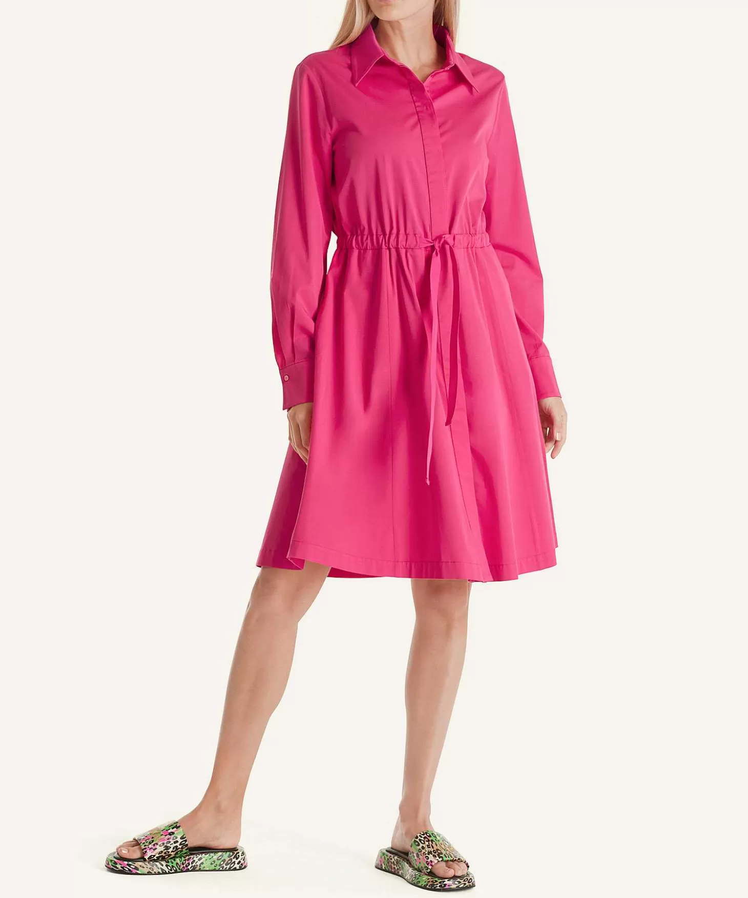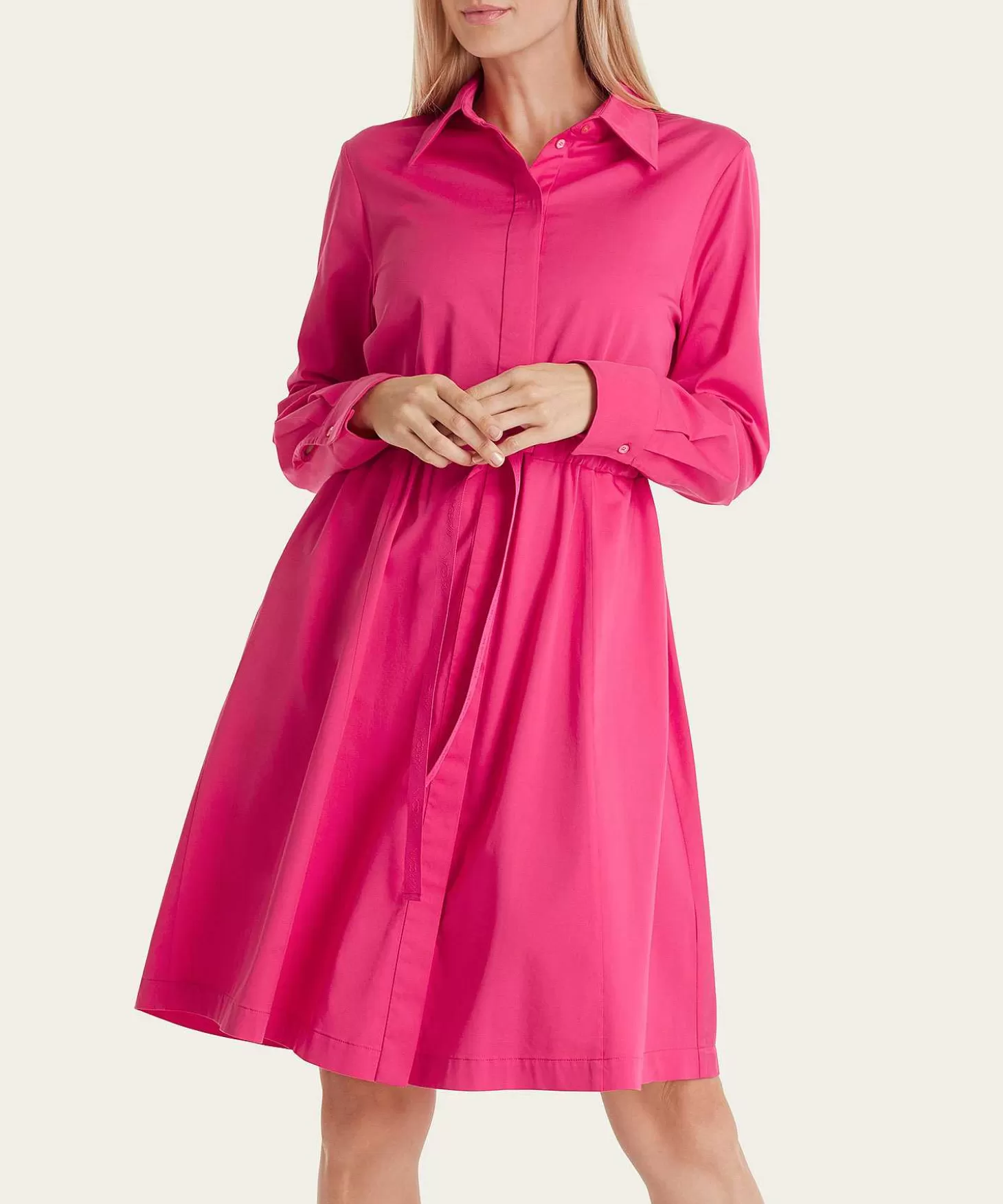 In Bright Fuchsia Is Deze Marc Cain Blousejurk Een Traktatie Voor De Zintuigen. Zie Je Haar Minimalistische Model En Pittige Kleur En Voel Je Haar Luchtige Katoenmix? Deze Jurk Heeft Een Platte Kraag Met Knoopje, Een Blinde Knoopsluiting, Een Uitlopende Rok En Een Verstelbaar Striklint In De Taille Voor Een Feminien Pasvorm. Je Draagt Haar Met Sneakers, Boots, Loafers, Sandaaltjes Of High Heels En Met De Juiste Sieraden En Een Tas Creëer Je Steeds Opnieuw Een Klassieke Of Juist Zeer Sportieve Look. Waar Ga Jij Heen Met Deze Beauty Van Marc Cain? Marc Cain Remix. Het Model Heeft Een Lengte Van 179 Cm En Draagt Maat N3/38.Samenstelling: 50% Katoen, 46% Viscose, 4% Elastan.