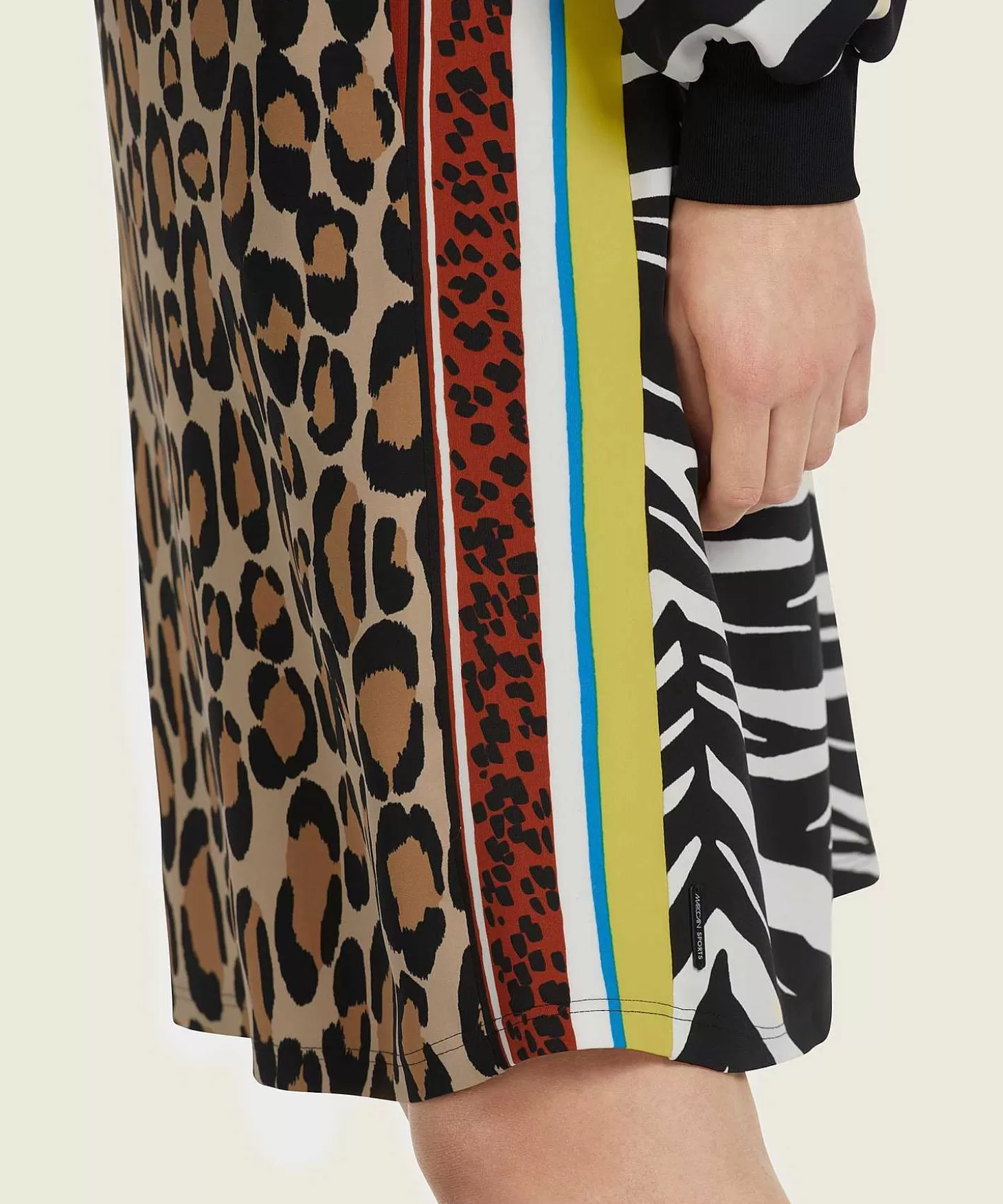 Mix & Match Met Deze Marc Cain Sports Scuba Jurk In Mixed Animal. Met Haar Sportieve Wijde Fit In A-Lijn, Raglan Ballonmouw, Verborgen Steekzakken En Gestreept Halsboordje Draagt Ze Net Zo Sportief Als Ze Oogt. Dit Is Een Onweerstaanbare Jurk Die Niemand Ontgaat, Met Luipaardvlekken Voor, Zebra Achter En Verticale Biezen In Gevlekt Steenrood, Offwhite , Blauw En Geel In De Zijnaad. Waar Combineer Jij Haar Mee? Met Hoge Laarzen En Een Matching Tas Of Met Een Tregging En High Heels. Voor Een Zandlopereffect Strik Je Je Taille Met Een Wikkelriem. Uit Het Thema Boom Bang Brrr. Samenstelling: 100% Polyester. Voorkant: 100% Polyester. Stof 2: 87% Polyester, 13% Elastan.